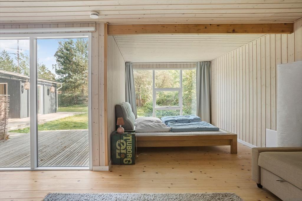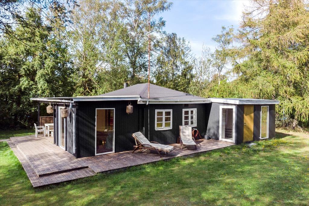 Dette hyggelige fritidshus ligger kun 350 meter fra vandet. Derudover ligger huset på en 1006 kvm grund. Ved huset er der skøn terrasse rundt om huset, hvor der er havemøbler og grill. I haven er der plads til en masse aktiviteter og leg, derudover er der også bålplads. Til huset er der også en overdækket terrasse. Til sidst er der den skønne udendørs sauna, hvor der er plads til afslapning og hygge.