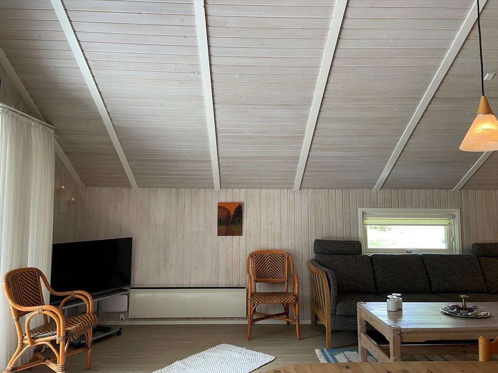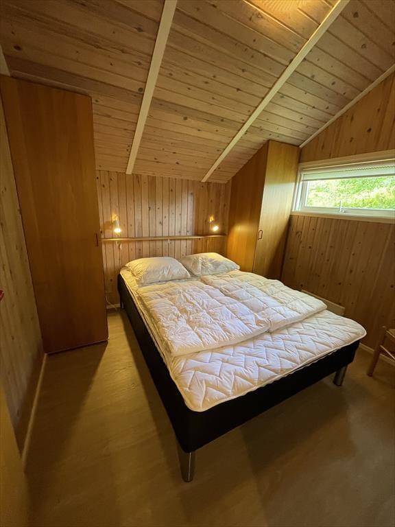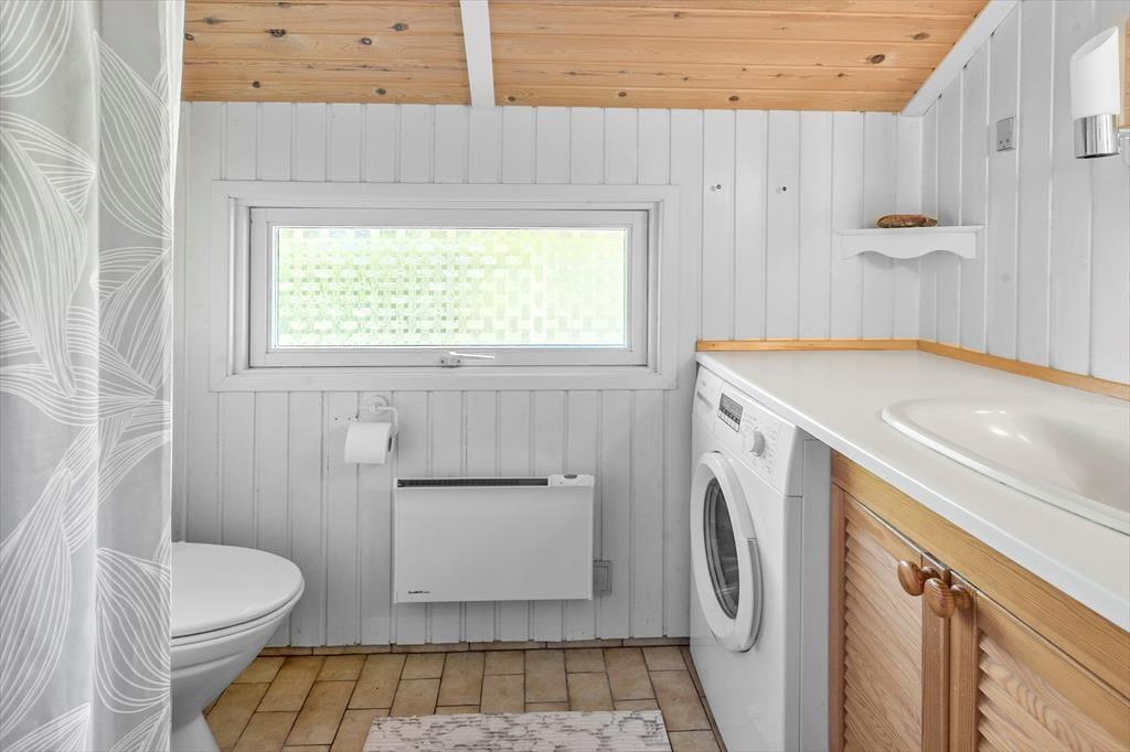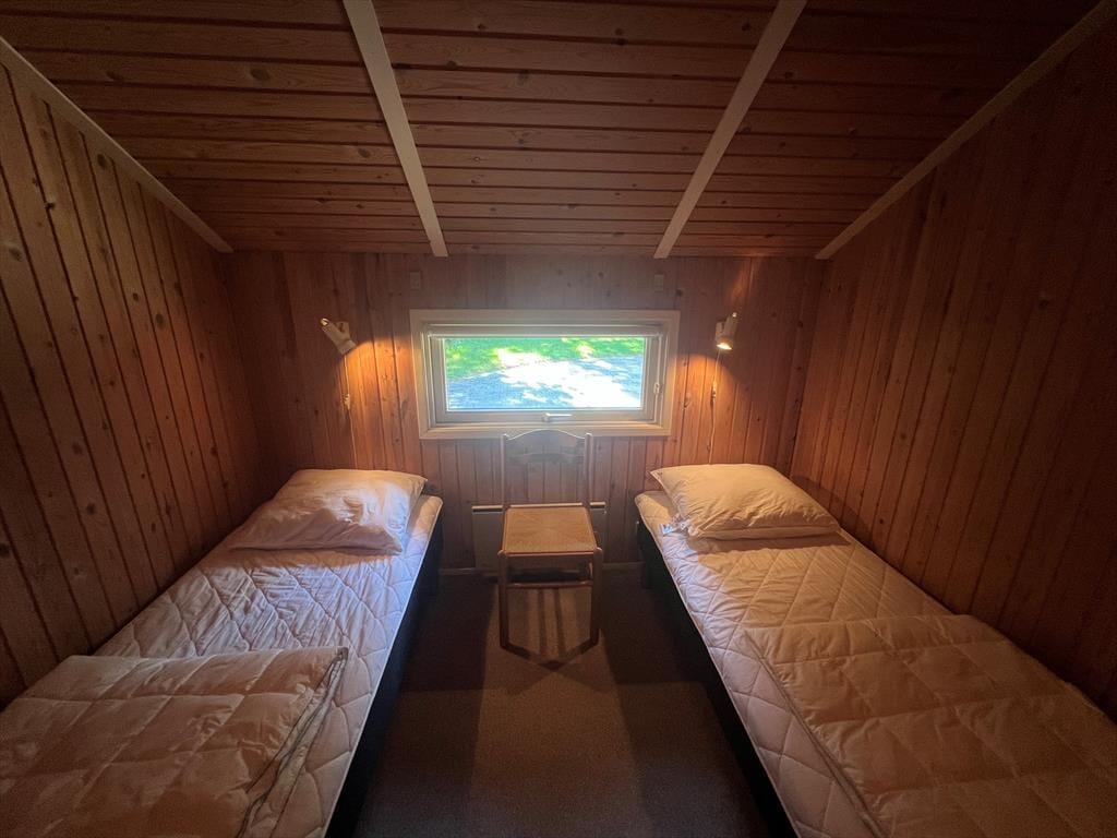 Fritidshuset byder på 3 gode soveværelser, i det ene værelse er der 1 dobbeltseng, i de 2 andre soveværelser er der 2 enkeltsenge. Derudover har feriehuset et badeværelse med wc, bruser og vaskemaskine. Ved siden af feriehusets badeværelse er der indgang til saunaen. Derudover har feriehuset et dejligt køkken, med udgang til spisestue og stuen. Fra stuen er der udgang til husets skønne terrasse.