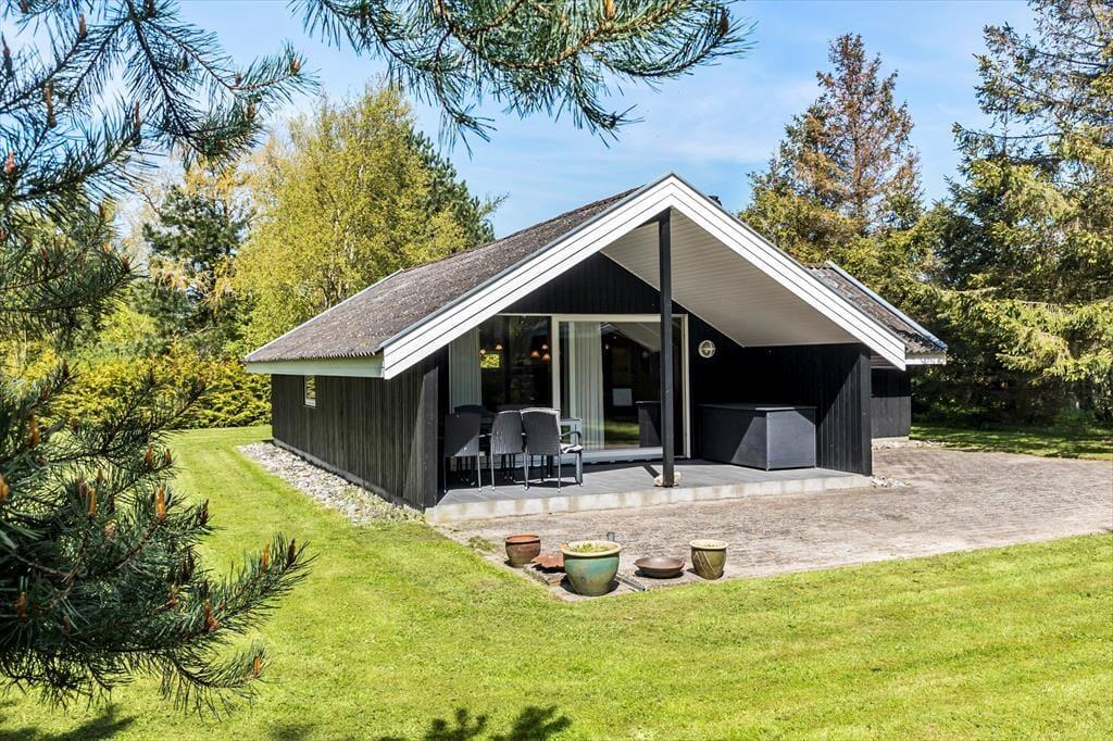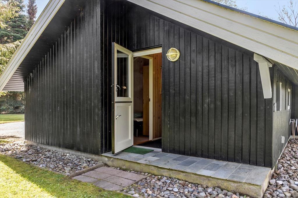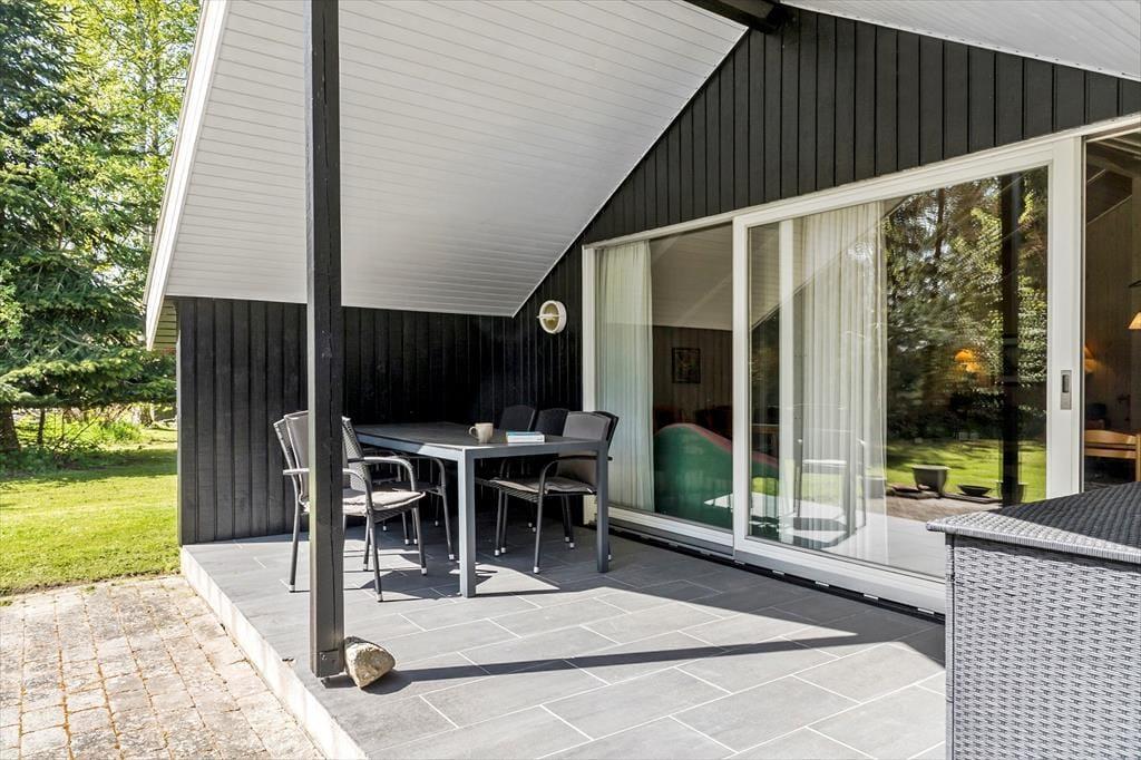 Dette skønne fritidshus ligger kun 300 meter fra vandet. Derudover ligger huset på en 1351 kvm grund. Ved huset er der skøn terrasse, som er delvist overdækket. På terrassen er der havemøbler og grill. I haven er der plads til en masse aktiviteter og leg.
