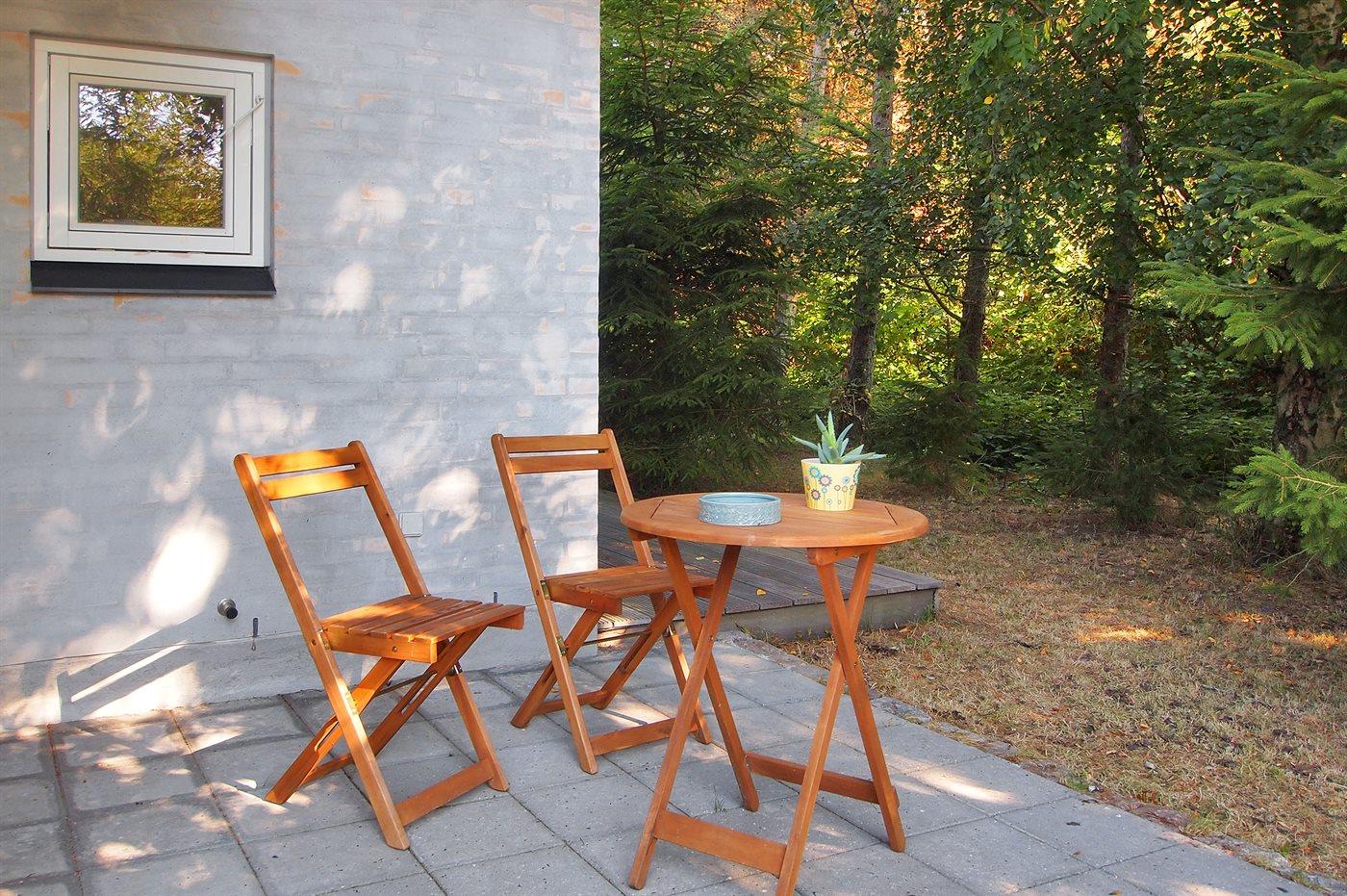 Ferieboligen er beliggende på en 1000 m² stor naturgrund. Der er 150 m til havet. Nærmeste forretning er beliggende i en afstand af 5000 m. Til ferieboligen hører 50 m² terrasseareal. Der er redskabsrum. Parkering ved ferieboligen.