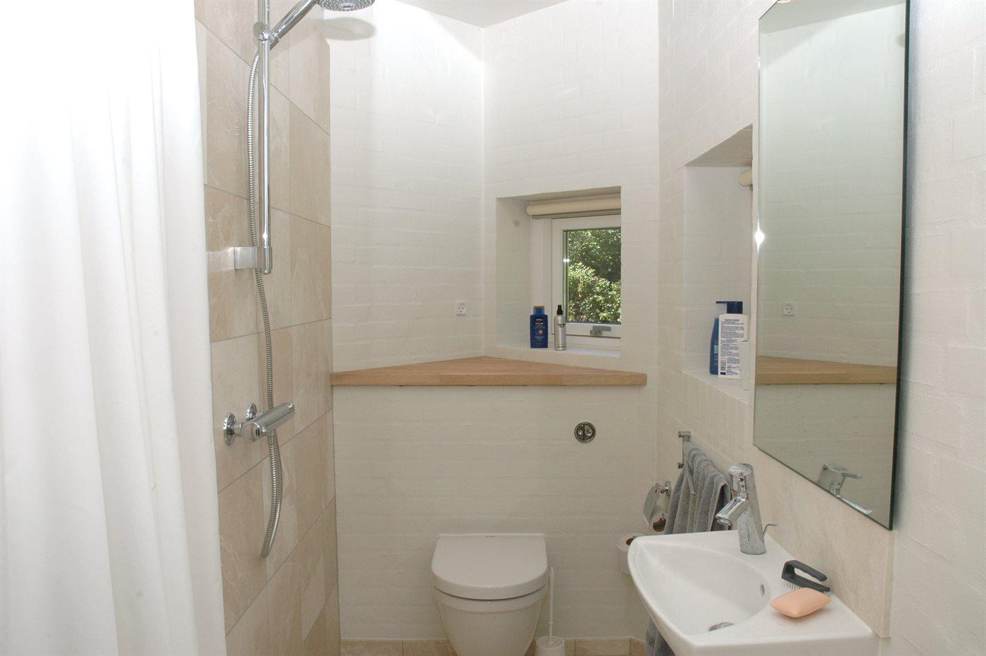 Der er 2 badeværelser med bruser og 2 toiletter.