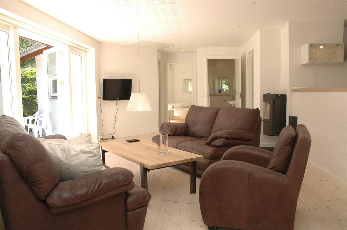 Der er i alt 3 soveværelser. Sovepladserne fordeler sig på: 4 sovepladser i dobbeltsenge. 2 sovepladser i enkeltsenge.
