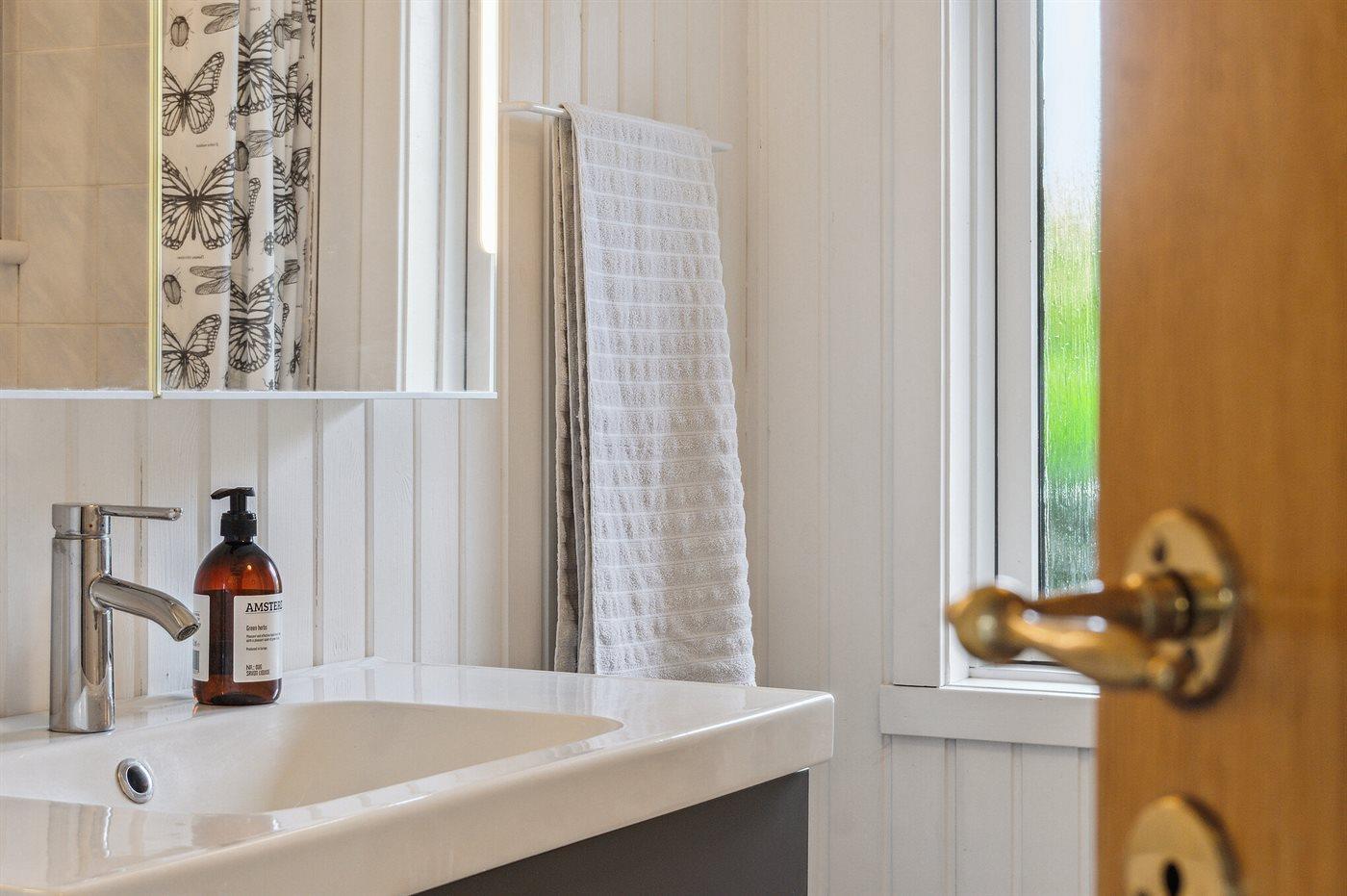 Der er 1 badeværelse med bruseniche og 2 toiletter, heraf 1 gæstetoilet. Der er gulvvarme på 1 badeværelse.