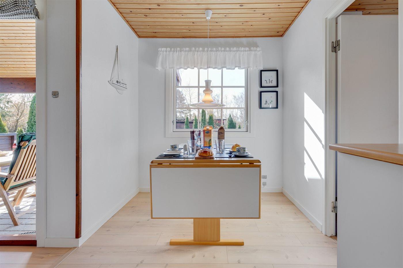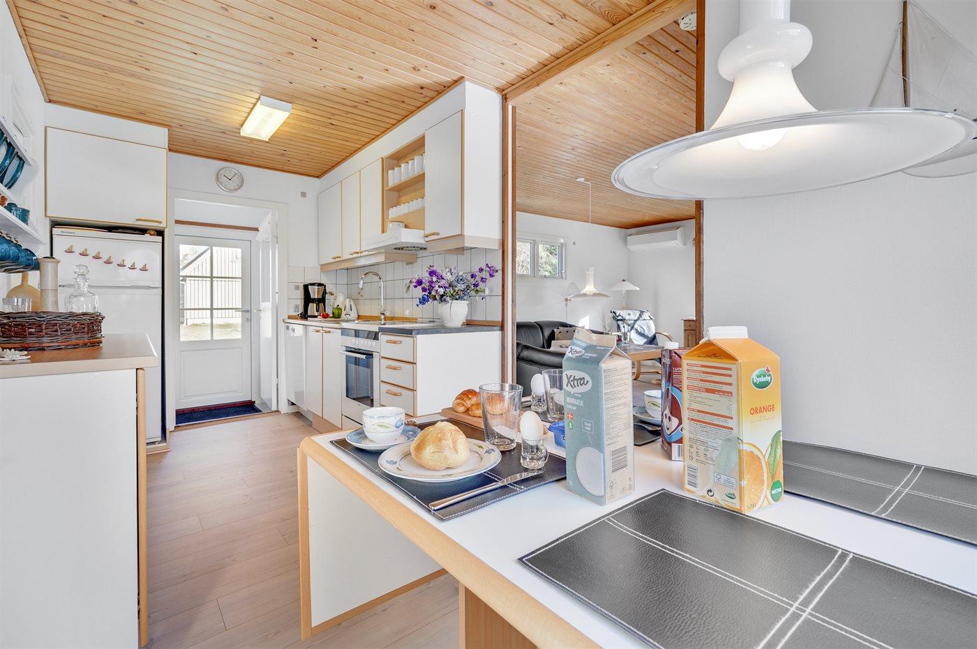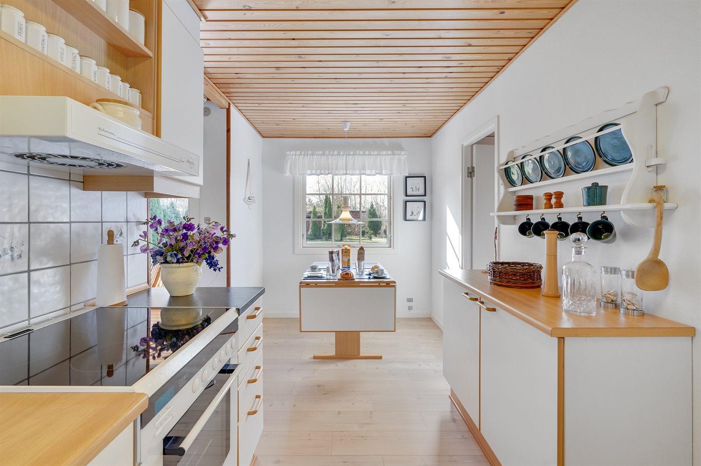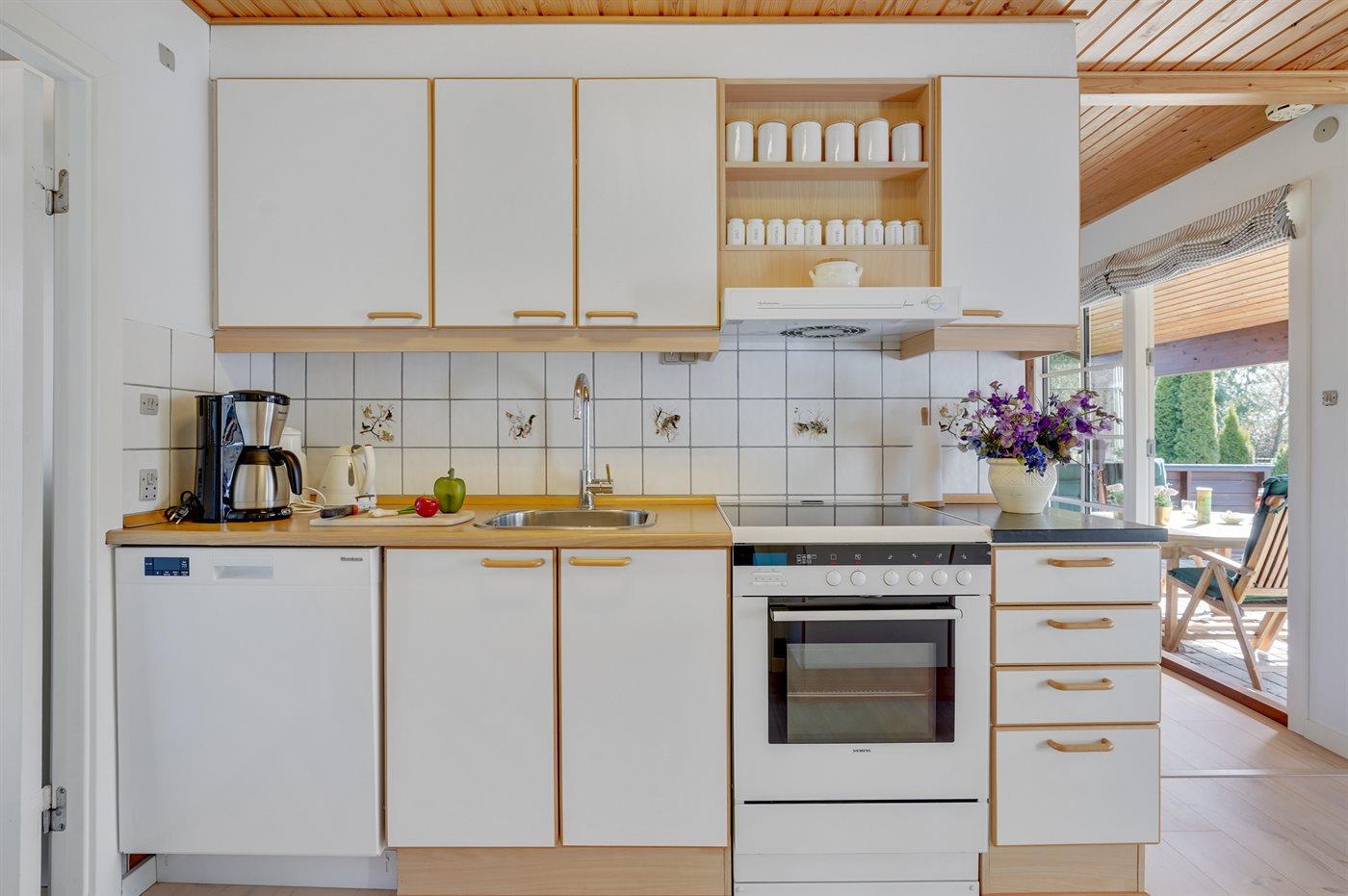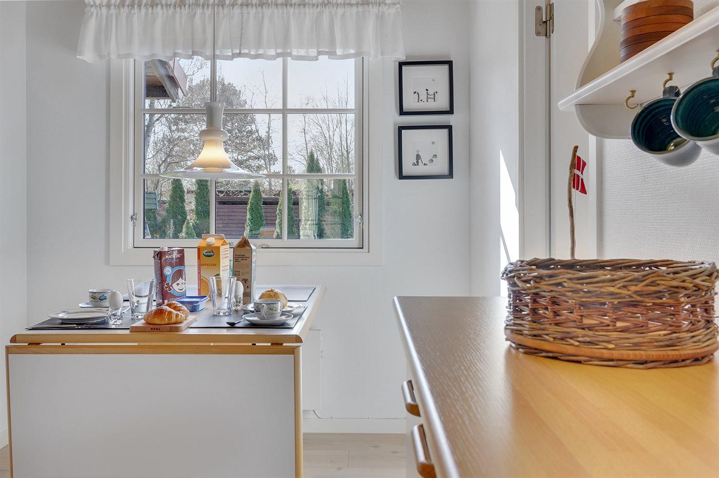 Køkkenet er udstyret med 1 køleskab. Der er 4 keramiske kogeplader, varmluftovn samt opvaskemaskine.
