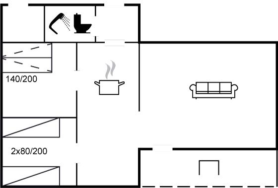 Der er i alt 2 soveværelser. Sovepladserne fordeler sig på: 2 sovepladser i enkeltsenge. 2 sovepladser i sovesofa (dobbelt).