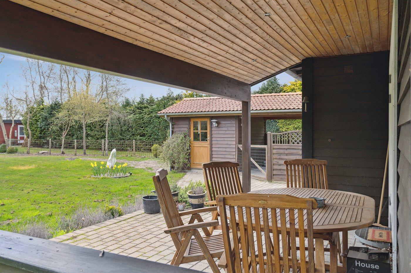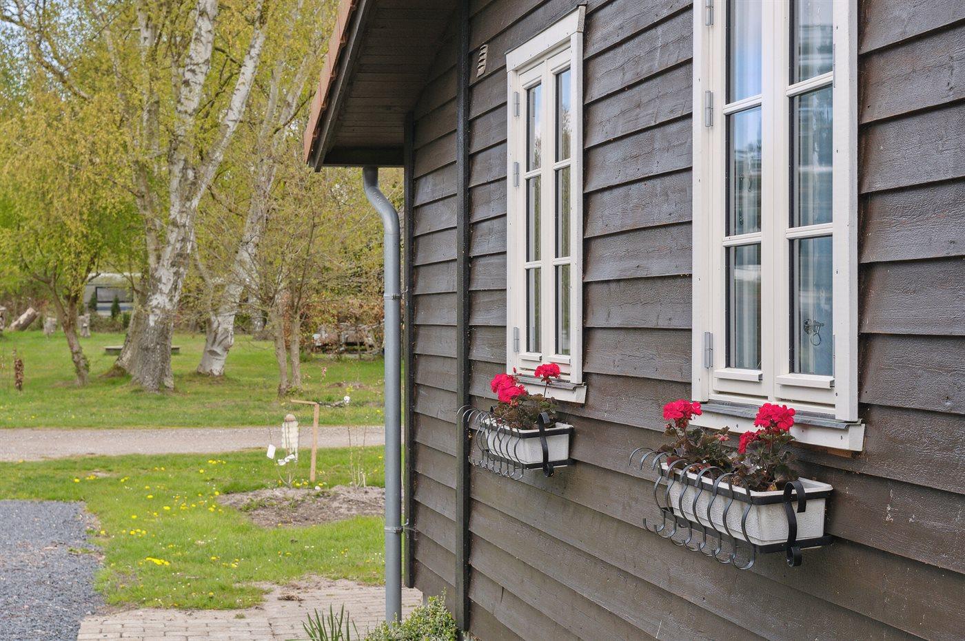 Ferieboligen er beliggende på en 1011 m² stor naturgrund. Grunden er indhegnet. Der er 660 m til havet. Nærmeste forretning er beliggende i en afstand af 4500 m. Til ferieboligen hører åbent og 15 m2 overdækket terrasseareal. Der er carport til rådighed. Parkering ved ferieboligen.