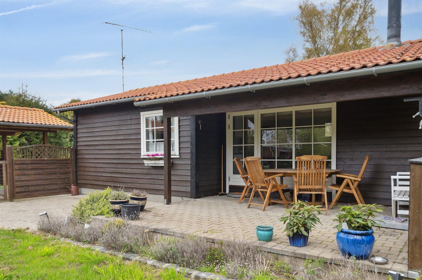 Hyggeligt, lille sommerhus med en dejlig og fredelig beliggenhed på lukket vej. Den store lukkede grund indbyder til hygge og leg og i nærheden findes skøn børnevenlig badestrand.