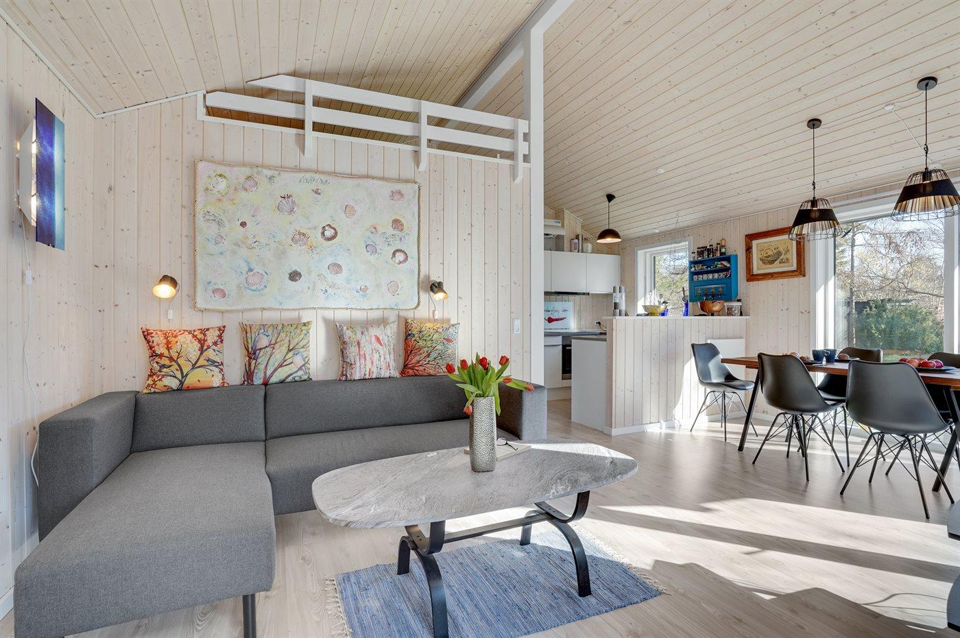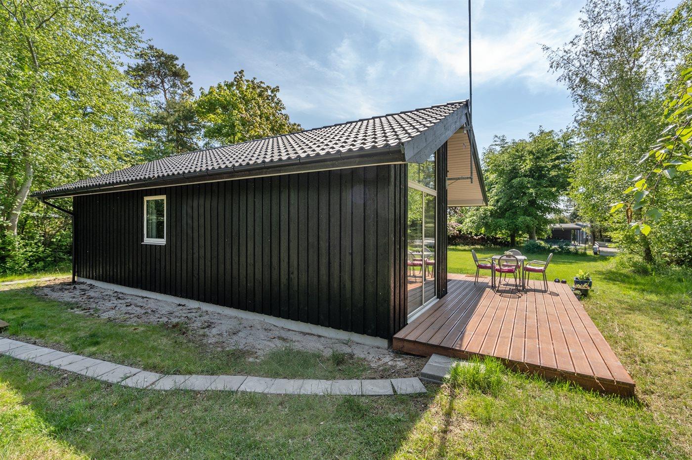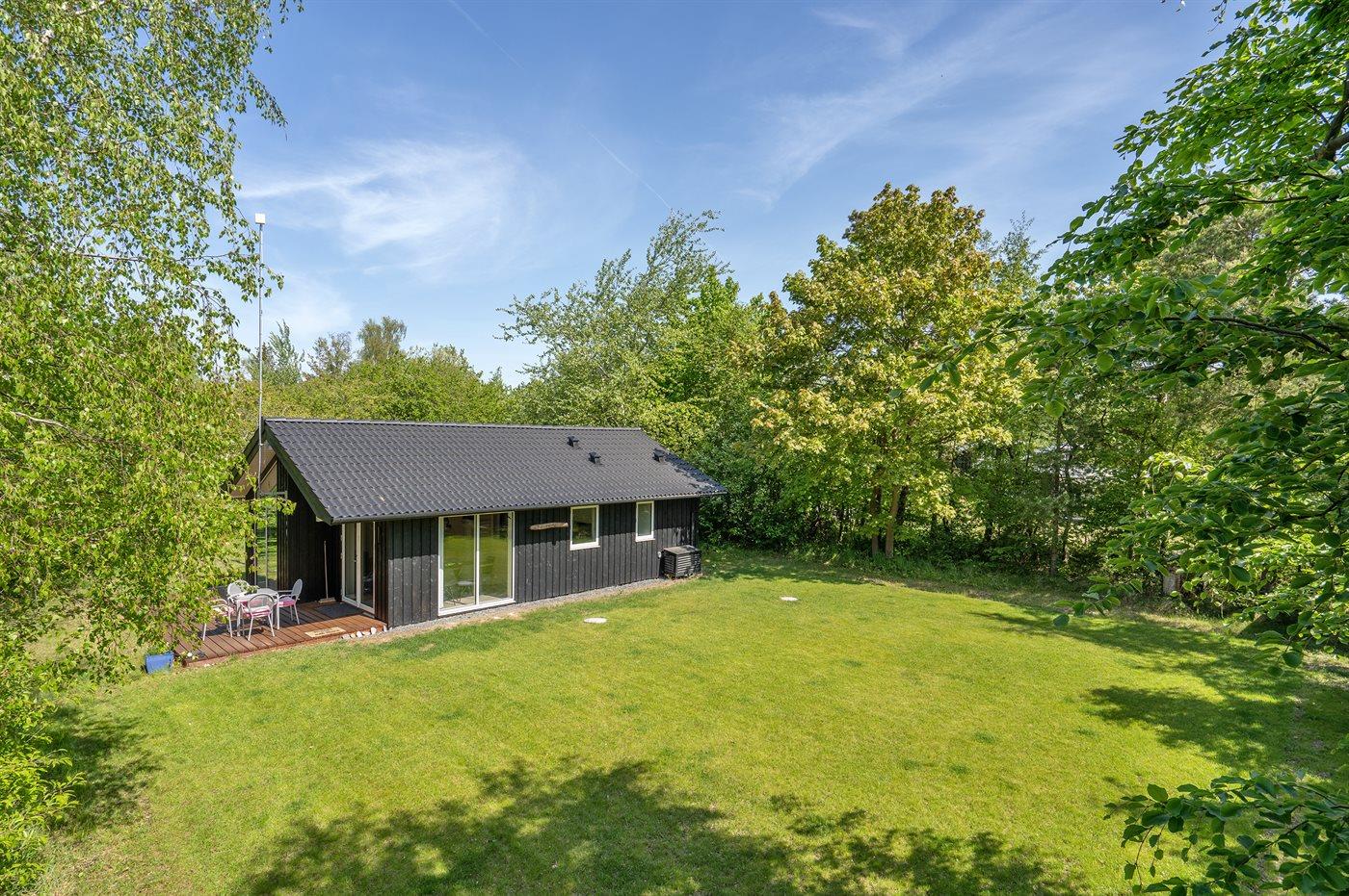 Kun 200 fra stranden - i et stille og fredeligt ferieområde med en masser af muligheder for at nyde naturen finder I dette skønne sommerhus, bygget i 2020. Grunden er en dejlig blanding af græsplæne og naturgrund langs skellet.