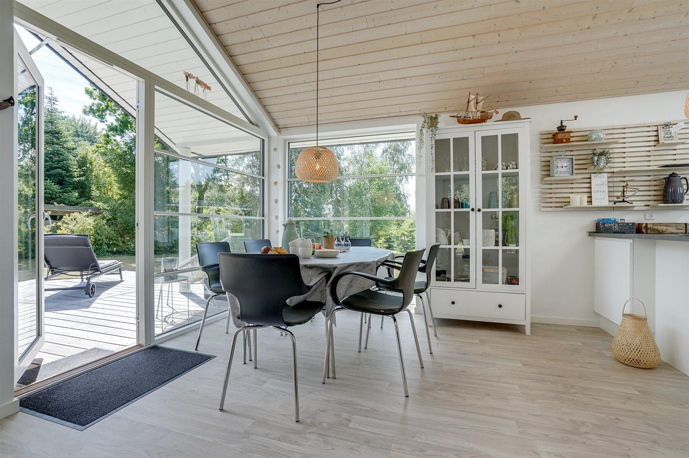 Køkkenet er udstyret med 1 køleskab. Der er 4 induktionskogeplader, varmluftovn, mikrobølgeovn, Airfryer samt opvaskemaskine.