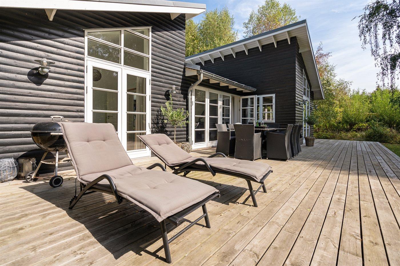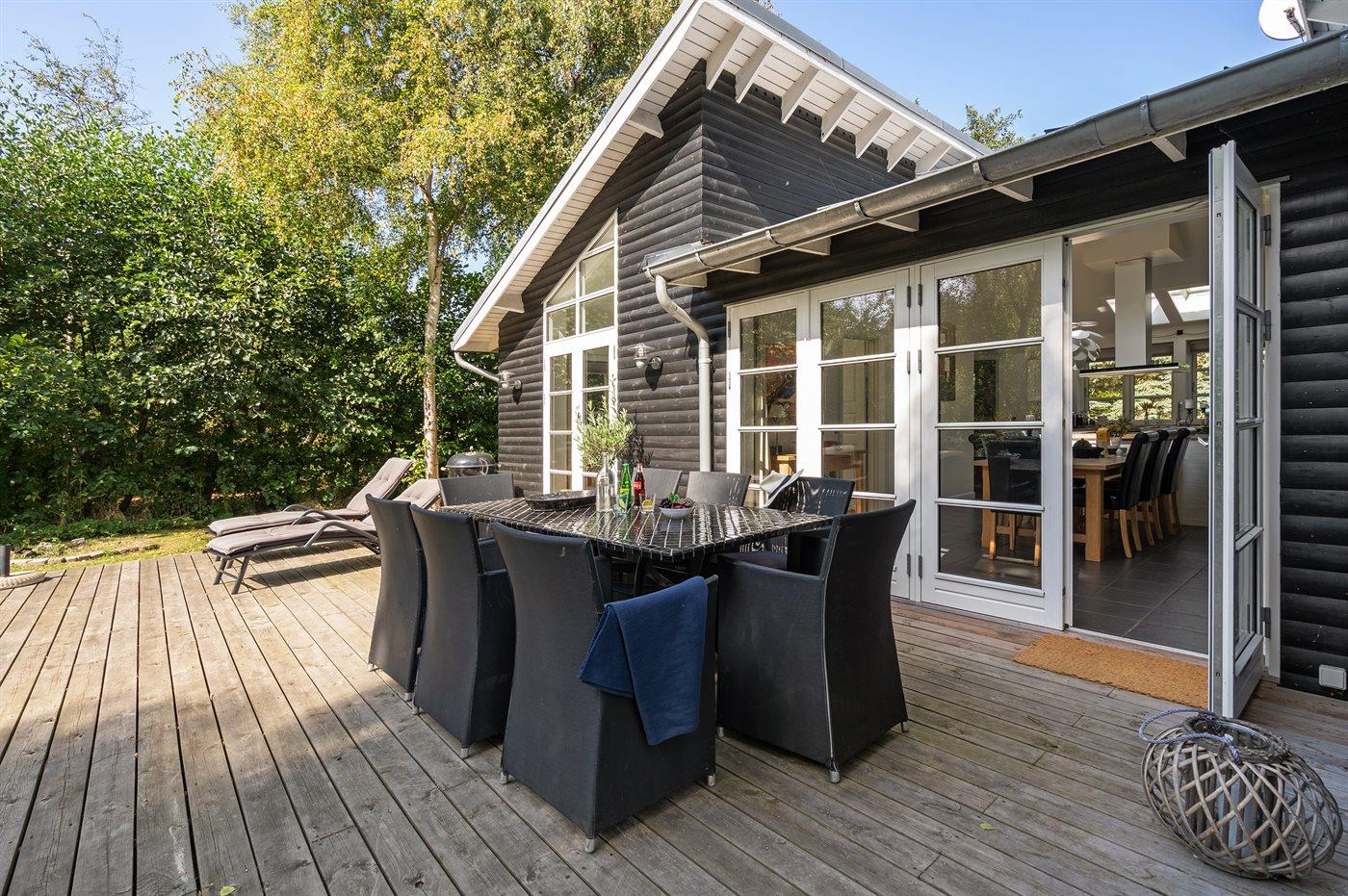 Et hyggeligt og rummeligt sommerhus på lukket vej i roligt sommerhusområde. Huset giver gode muligheder for både indendørs og udendørs hygge. Terrassen mod den forholdsvis lukkede have danner rammen for mange timers hyggelig ferie. Er man til indendørs forkælelse, kan man hoppe en tur i spa eller nyde kaffen foran brændeovnen.