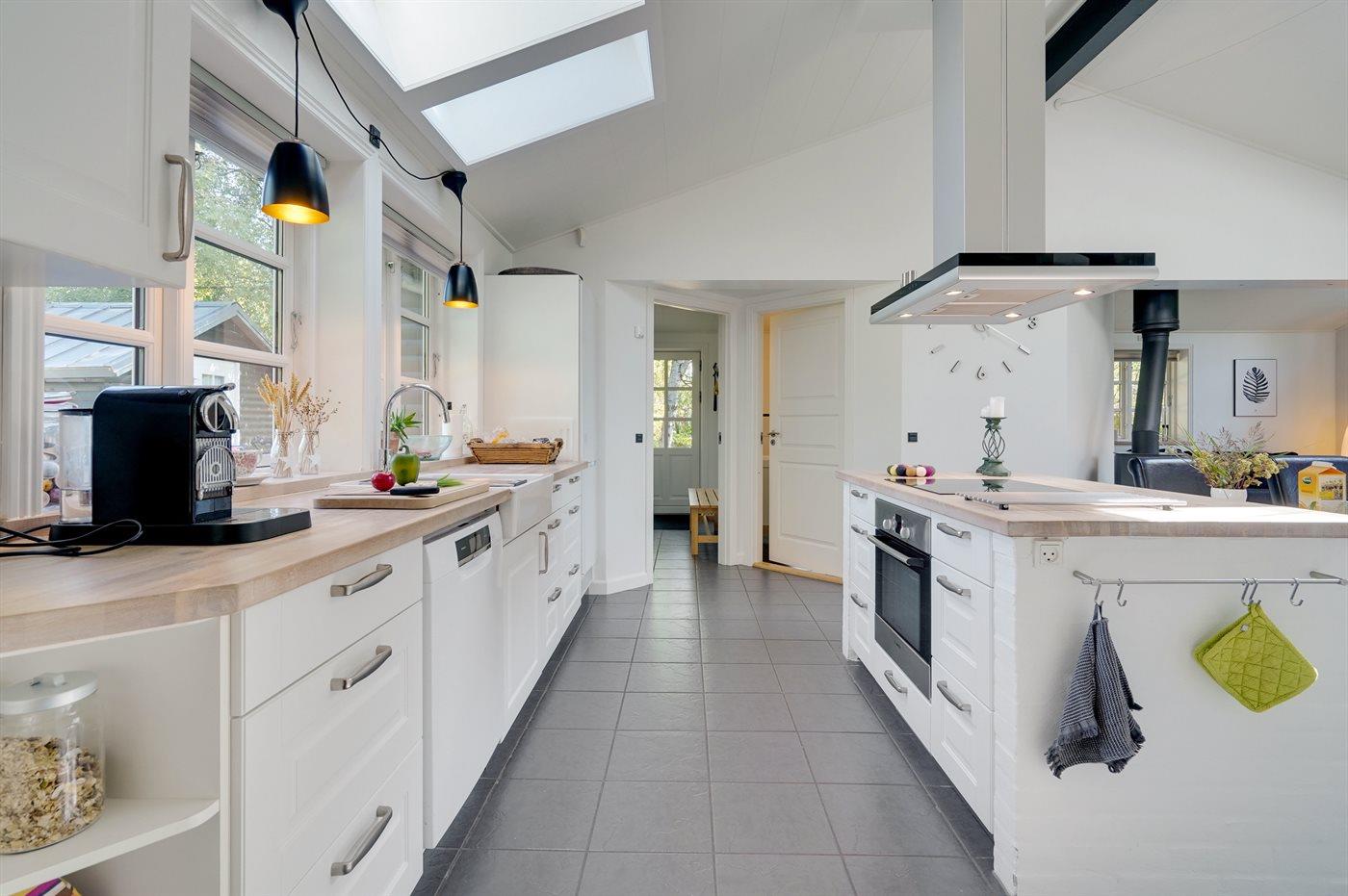 Køkkenet er udstyret med 1 køleskab. Der er 4 induktionskogeplader, varmluftovn, mikrobølgeovn samt opvaskemaskine.