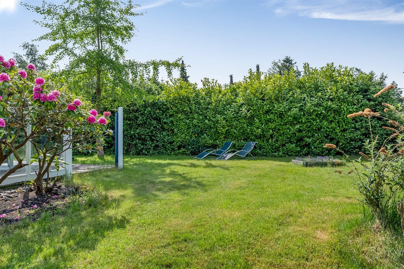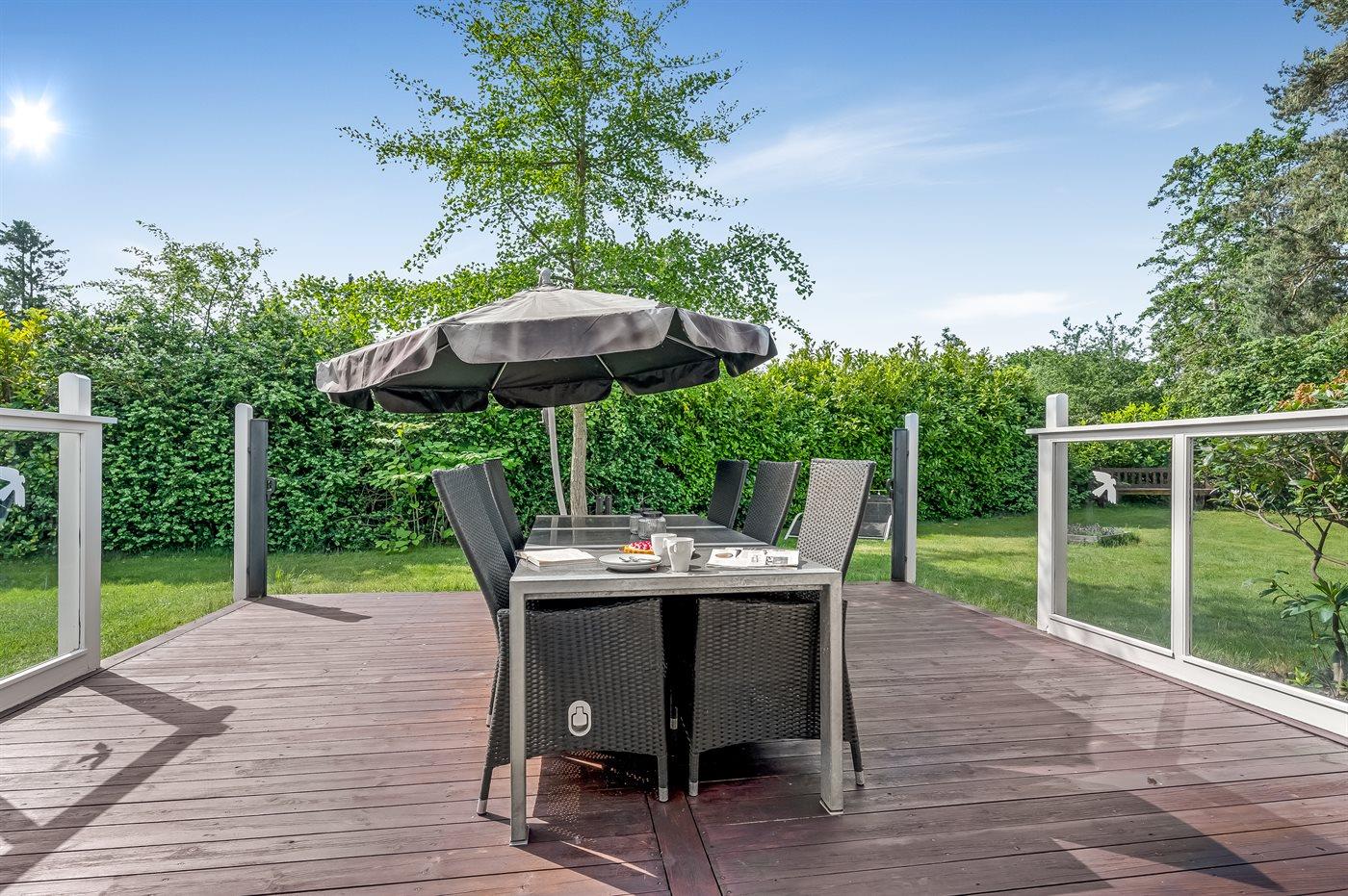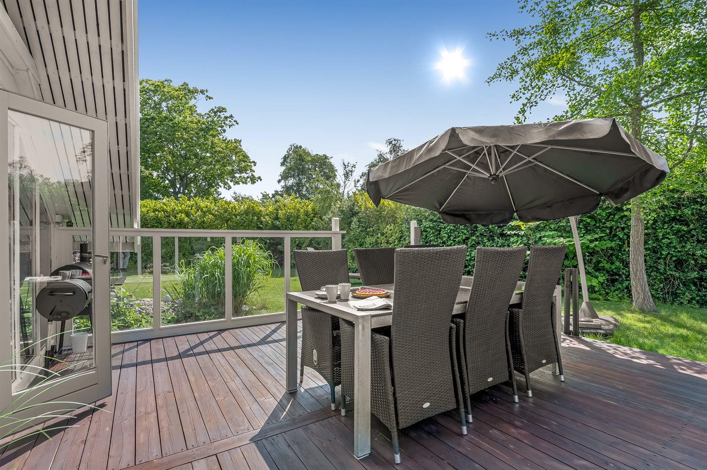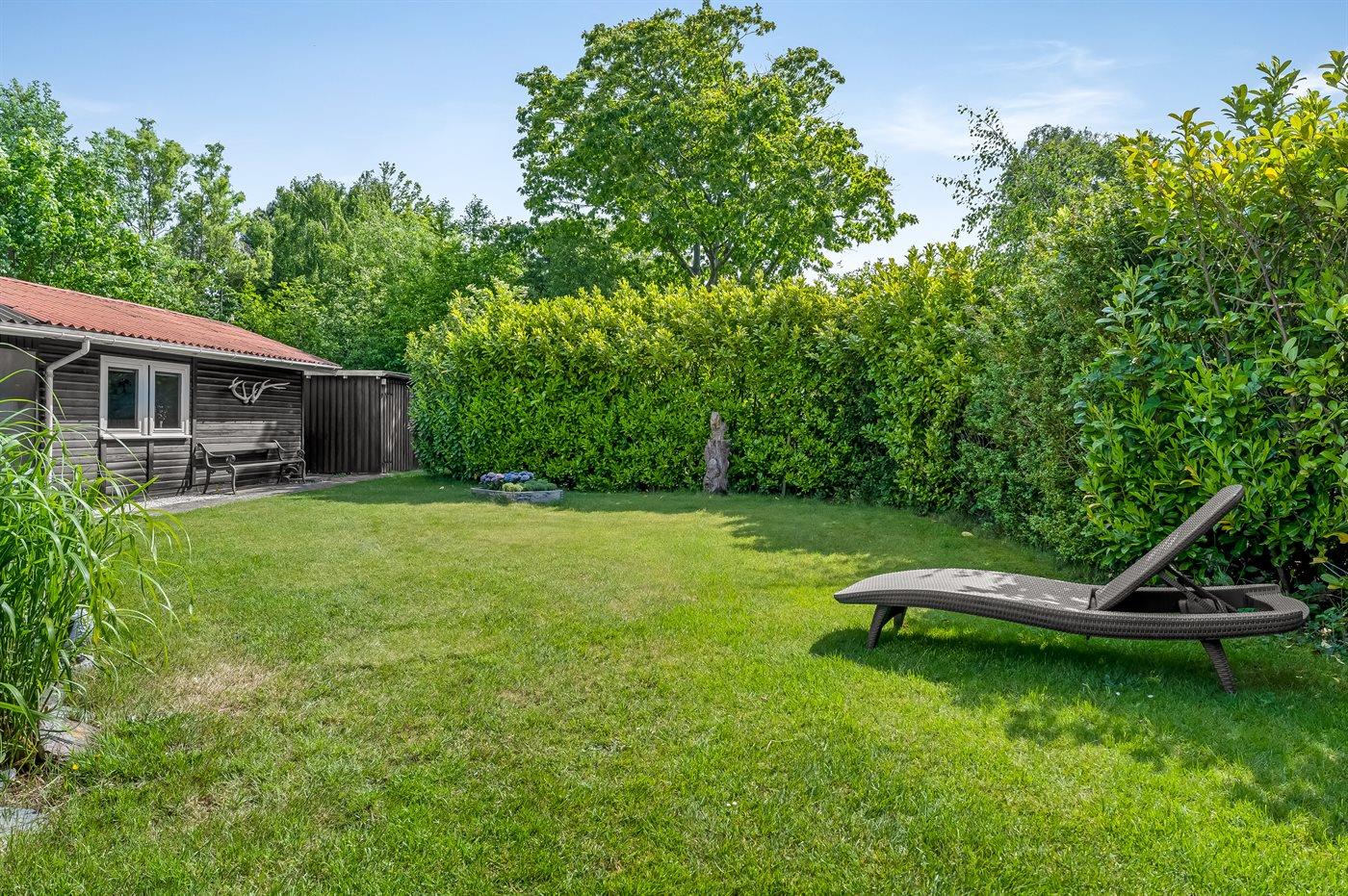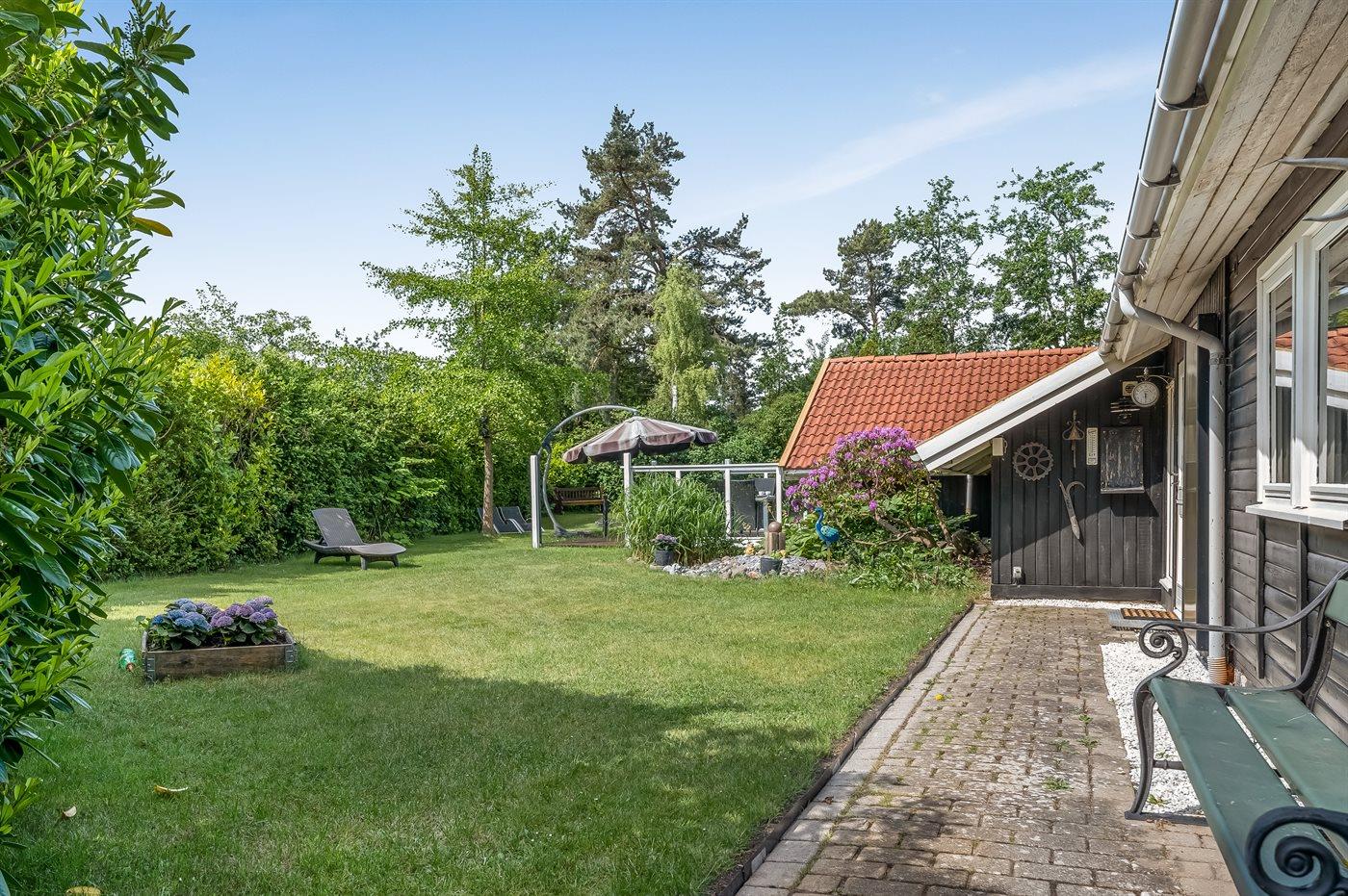 Feriehuset har to dejlige terrasser, både en overdækket og en åben. Der er mange læ-muligheder, og grunden er ugenert. I haven finder I sandkasse, gynge, fodboldmål, trampolin og bålsted.