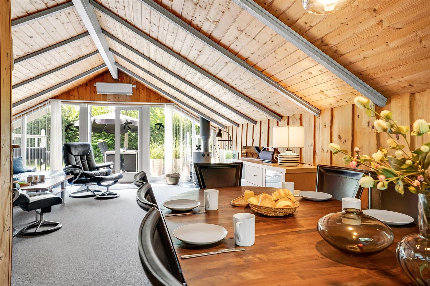 Hyggeligt sommerhus med aktivitetsrum, brændeovn og to terrasser nær Gedesby Strand.