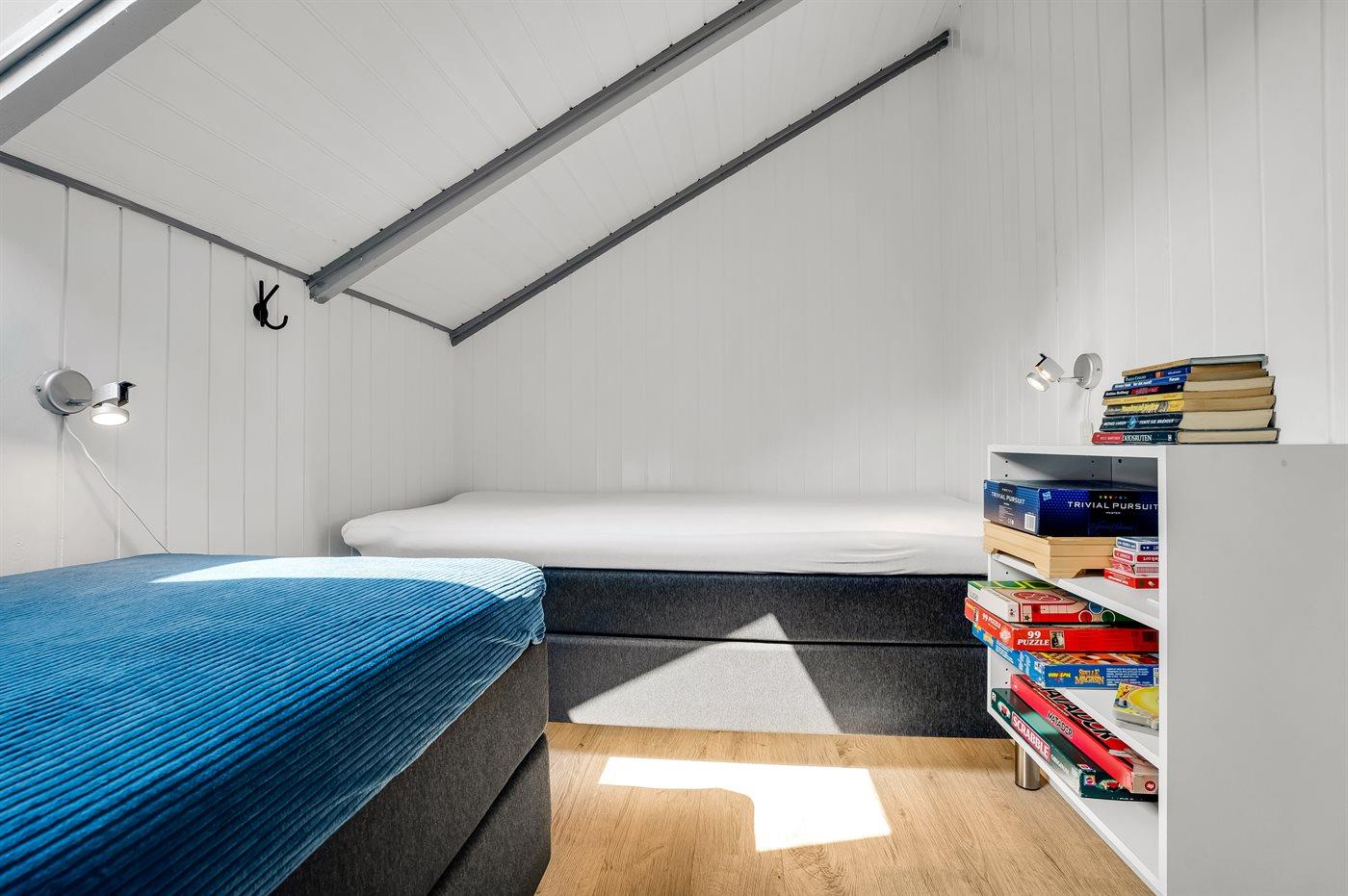 Der er i alt 4 soveværelser. Sovepladserne fordeler sig på: 4 sovepladser i dobbeltsenge. 4 sovepladser i enkeltsenge. Derudover er der 1 stk. barneseng.