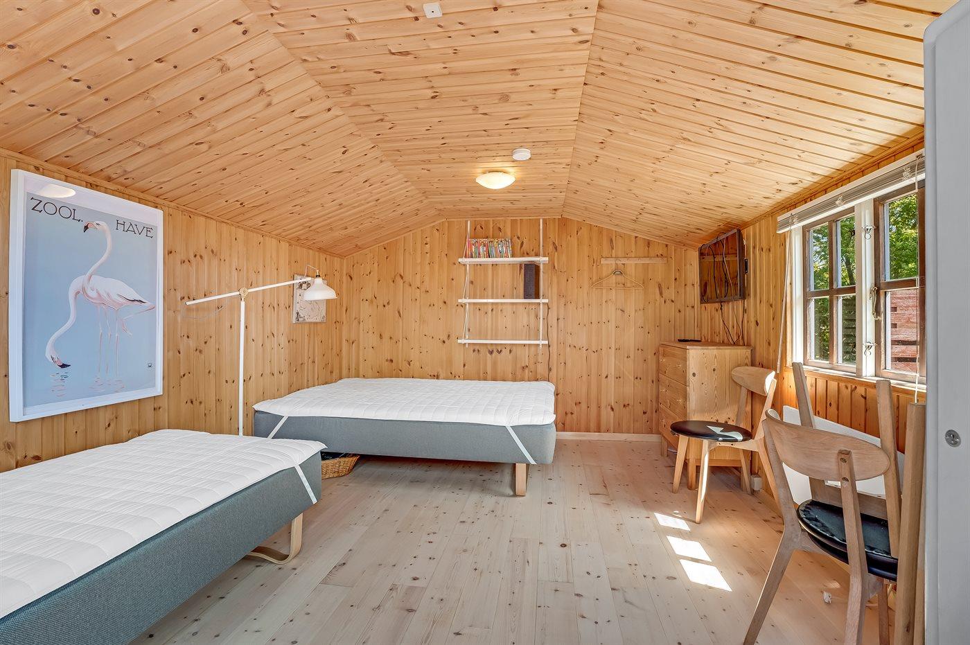 Der er i alt 3 soveværelser. Sovepladserne fordeler sig på: 4 sovepladser i dobbeltsenge. 1 soveplads i enkeltseng. 2 sovepladser i køjeseng. 3 af disse sovepladser befinder sig i et anneks.