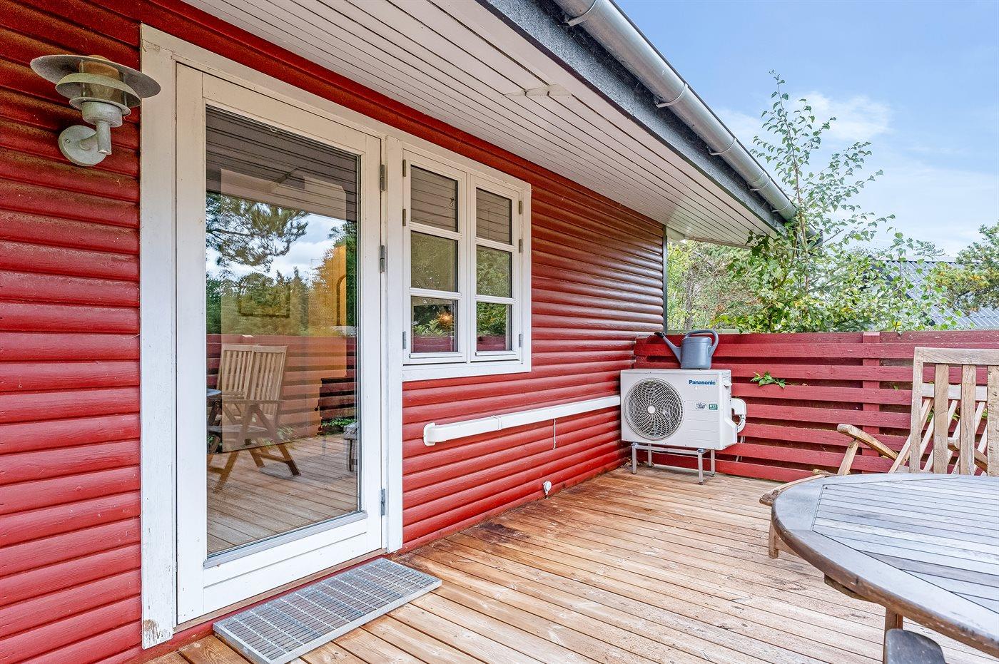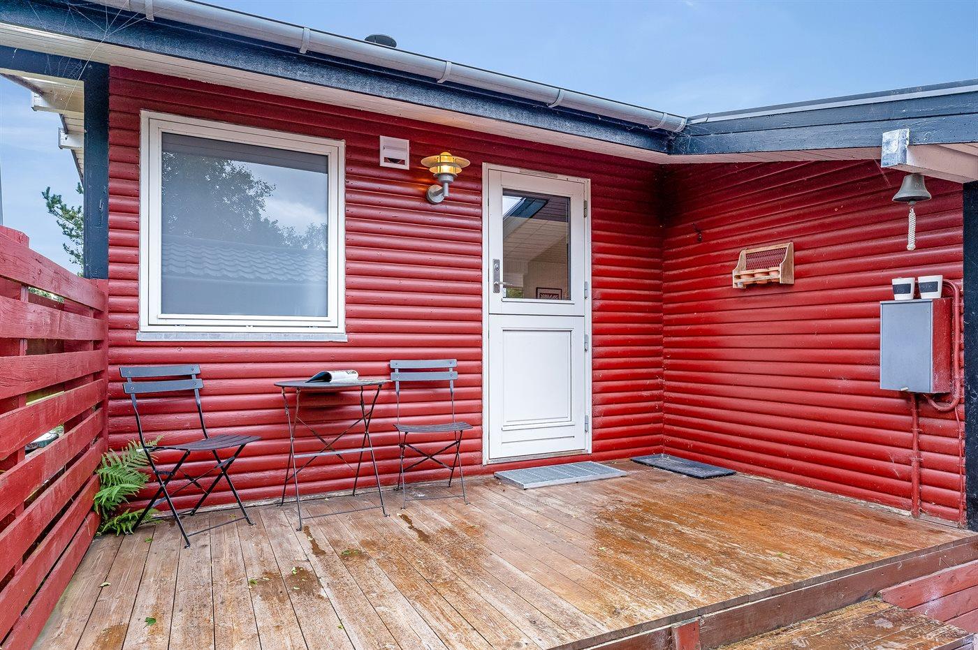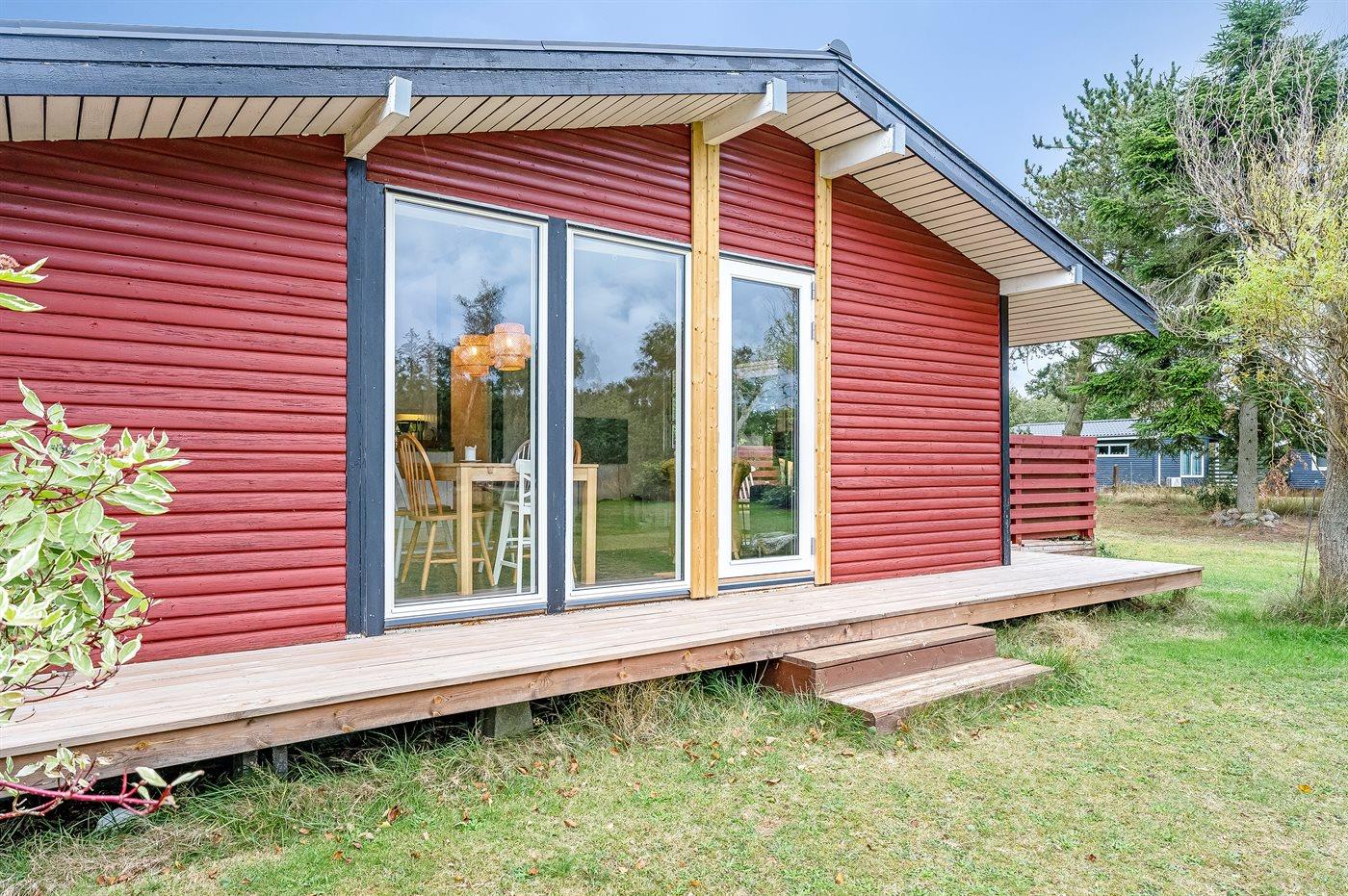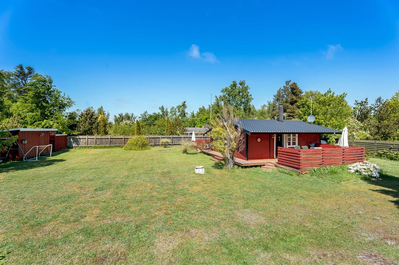 Ferieboligen er beliggende på en 1125 m² stor naturgrund. Der er 500 m til havet. Nærmeste forretning er beliggende i en afstand af 5000 m. Til ferieboligen hører åbent terrasseareal. Desuden er der overdækket terrasse. Gynge. Fodboldmål. Der ligger en legeplads i en afstand af 1500 m. Grill til rådighed. Der er carport til rådighed. Der er installeret stik til opladning af elbil. Parkering ved ferieboligen.