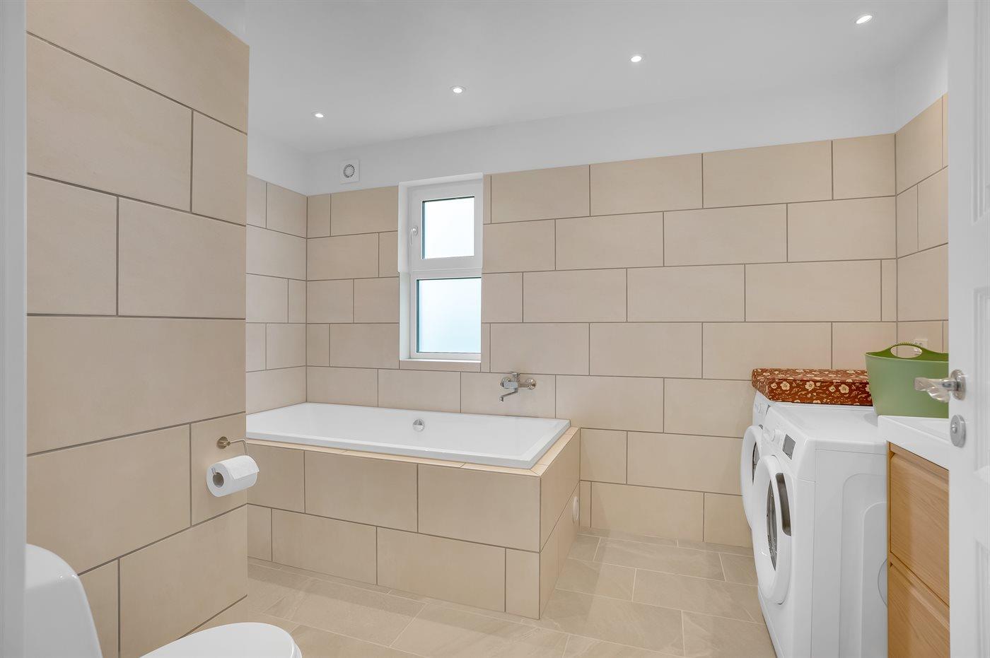 Der er 5 badeværelser med bruseniche og 5 toiletter. Der er gulvvarme på 5 badeværelser.. Badekar. I saunaen er der mulighed for afslapning.