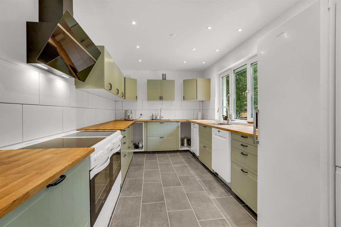 Køkkenet er udstyret med 2 køleskabe. Der er 8 keramiske kogeplader, 2 varmluftovne, mikrobølgeovn samt 2 opvaskemaskiner.