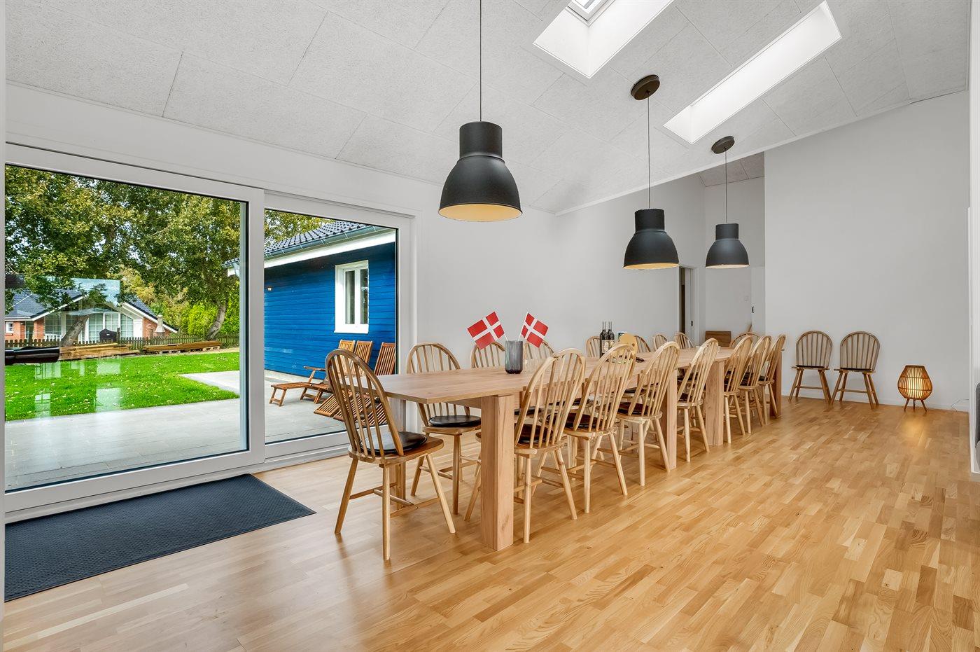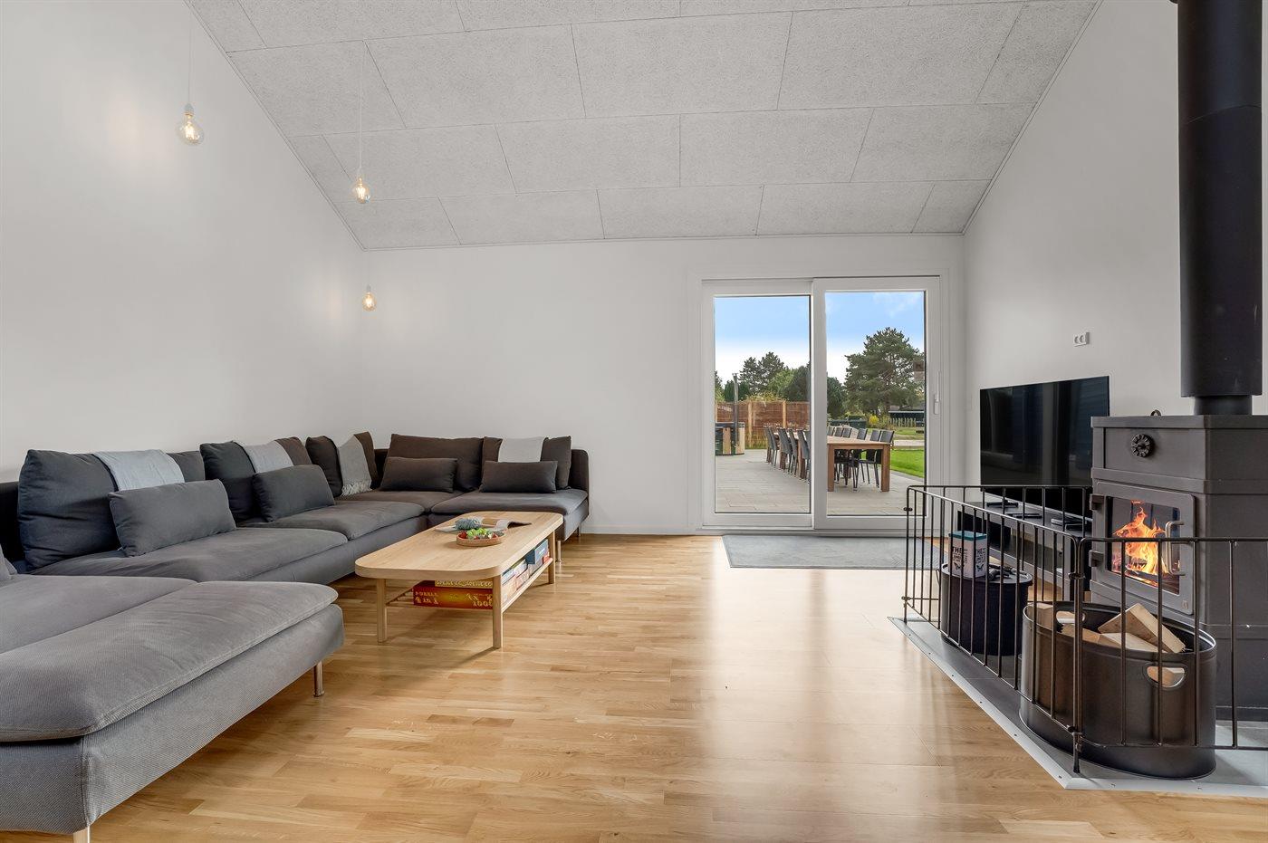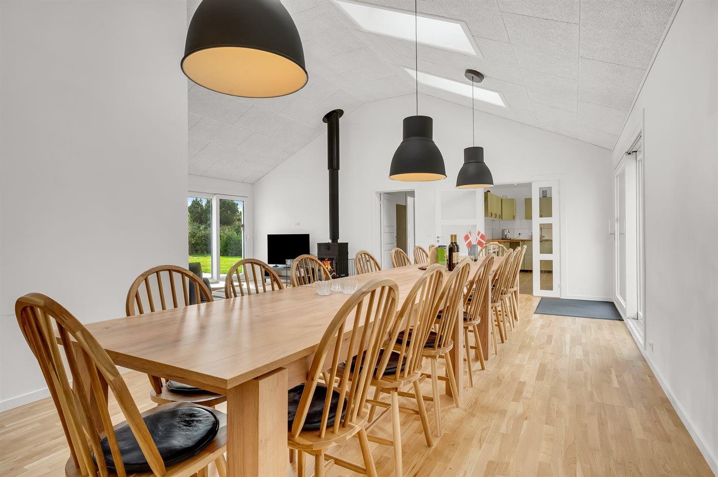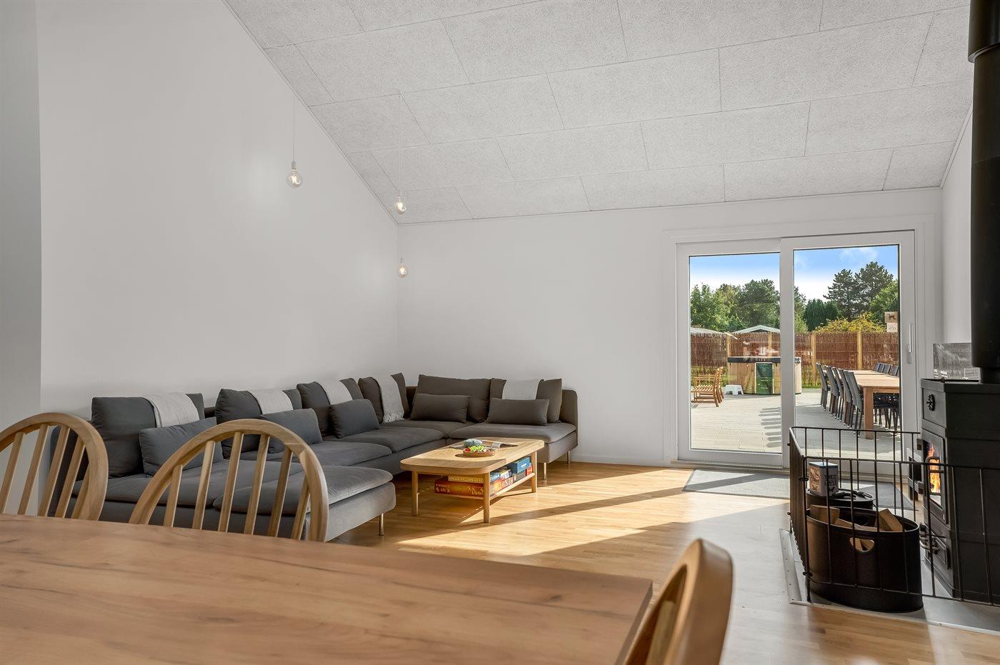 Huset ligger på en stor, ugeneret grund i Gedesby, hvor I får de ideelle rammer for årets familieferie. Indvendigt emmer det af klassisk ferieidyl med varme træpaneler, klinkegulve og en brændeovn, der giver varme, stemning og et dejligt lydtapet, hvis vejret bider lidt. Køkkenet er rummeligt og ganske veludstyret, så her kan familiens kokke kræse om livretterne, mens andre dækker op til måltidet ved spisebordet med en dejlig udsigt til haven. Efter aftensmaden kan I sætte jer godt til rette i et af sofaområderne med lækre snacks, brætspil eller en god film og hygge jer til langt ud på aftenen.