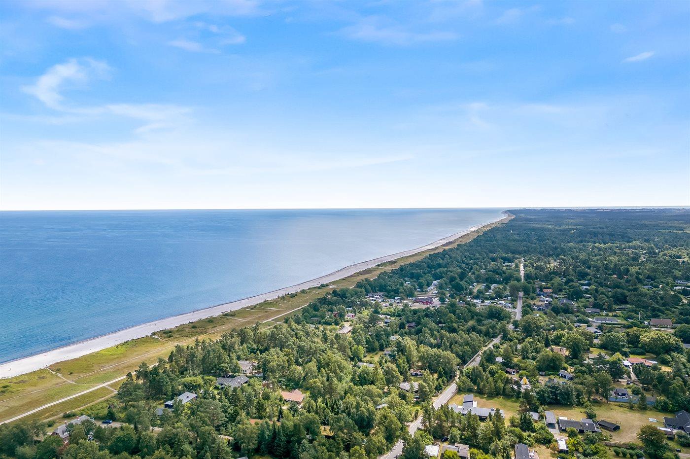 Ferieboligen er beliggende på en 2216 m² stor havegrund. Der er 250 m til havet. Nærmeste forretning er beliggende i en afstand af 6000 m. Der er en golfbane i en afstand af 12000 m. Til ferieboligen hører åbent terrasseareal. Der er redskabsrum. Gynge. Sandkasse. Legetårn. Rutchebane. Fodboldmål. Bålsted. Udendørs bruser. Grill til rådighed. Der er installeret stik til opladning af elbil. Med 11 kW ladeeffekt. Parkering ved ferieboligen.