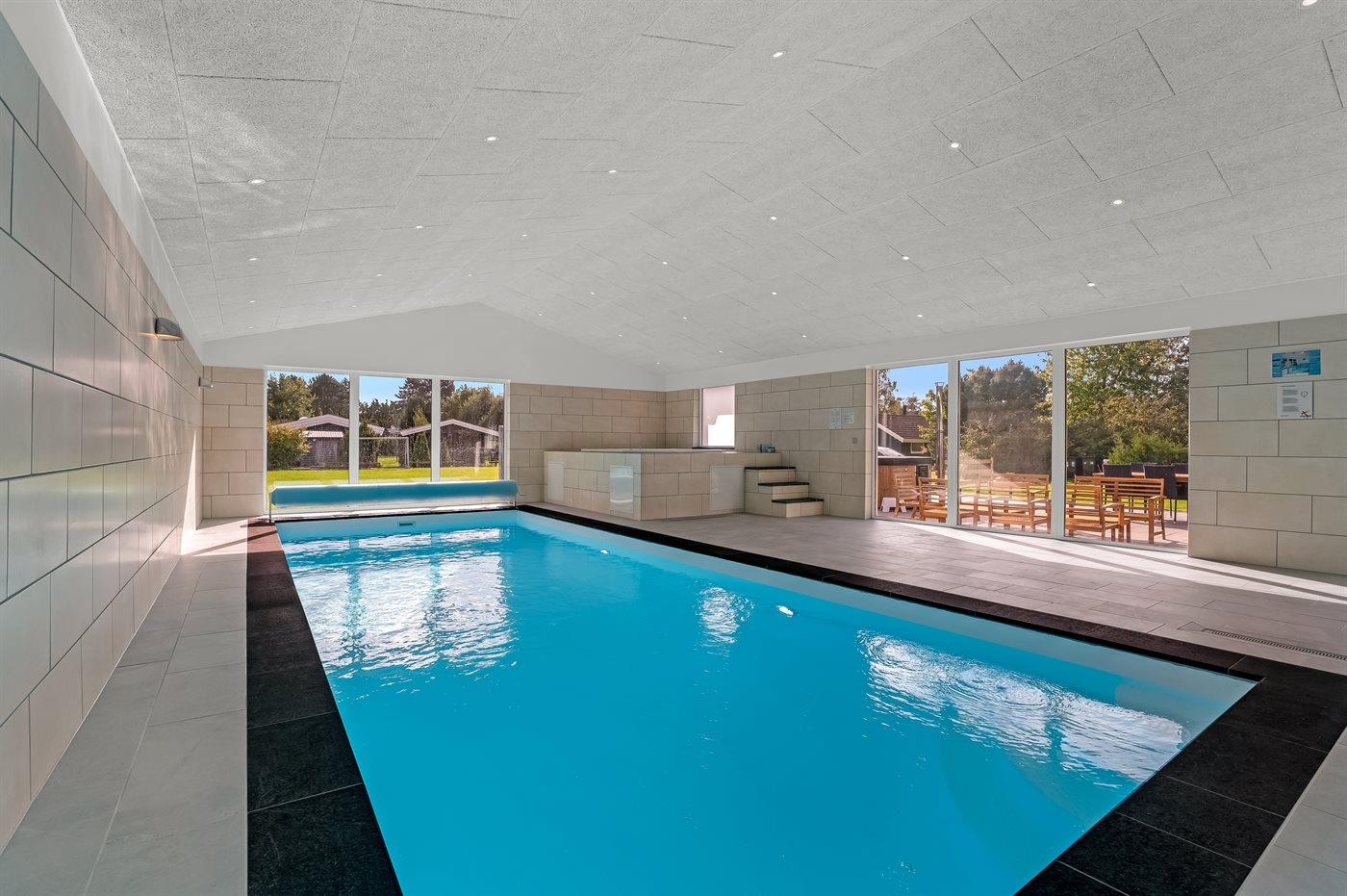 I den indendørs swimmingpool er der mulighed for leg og hyggeligt samvær. Swimmingpoolen måler op til 3,5 m i bredden, 9 m i længden og den er op til 1,45 m dyb. Vandet er mellem 24 og 28° C varmt. Swimmingpoolen har modstrømsanlæg. Der er gulvvarme i swimmingpoolområdet.