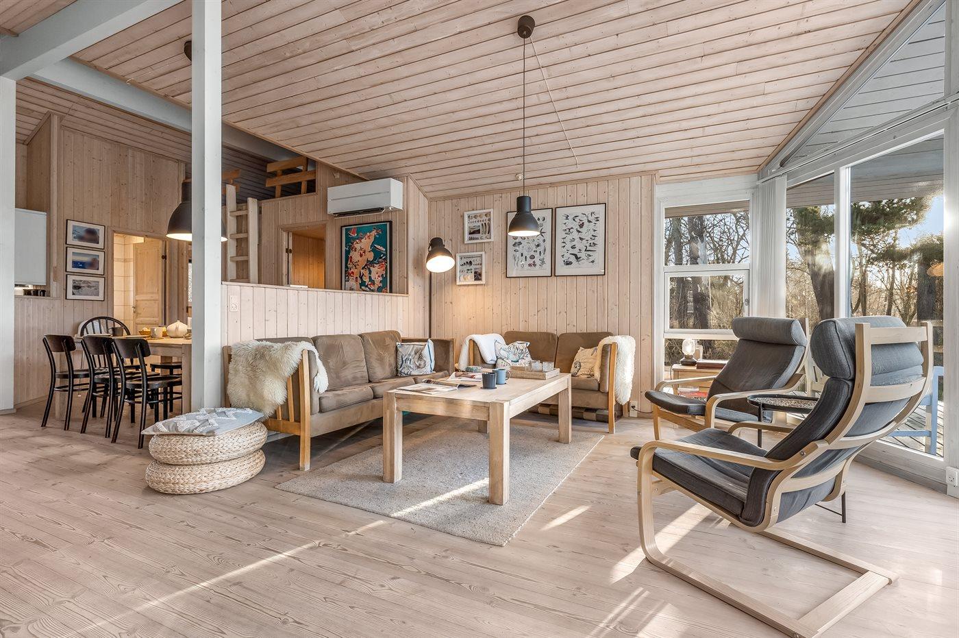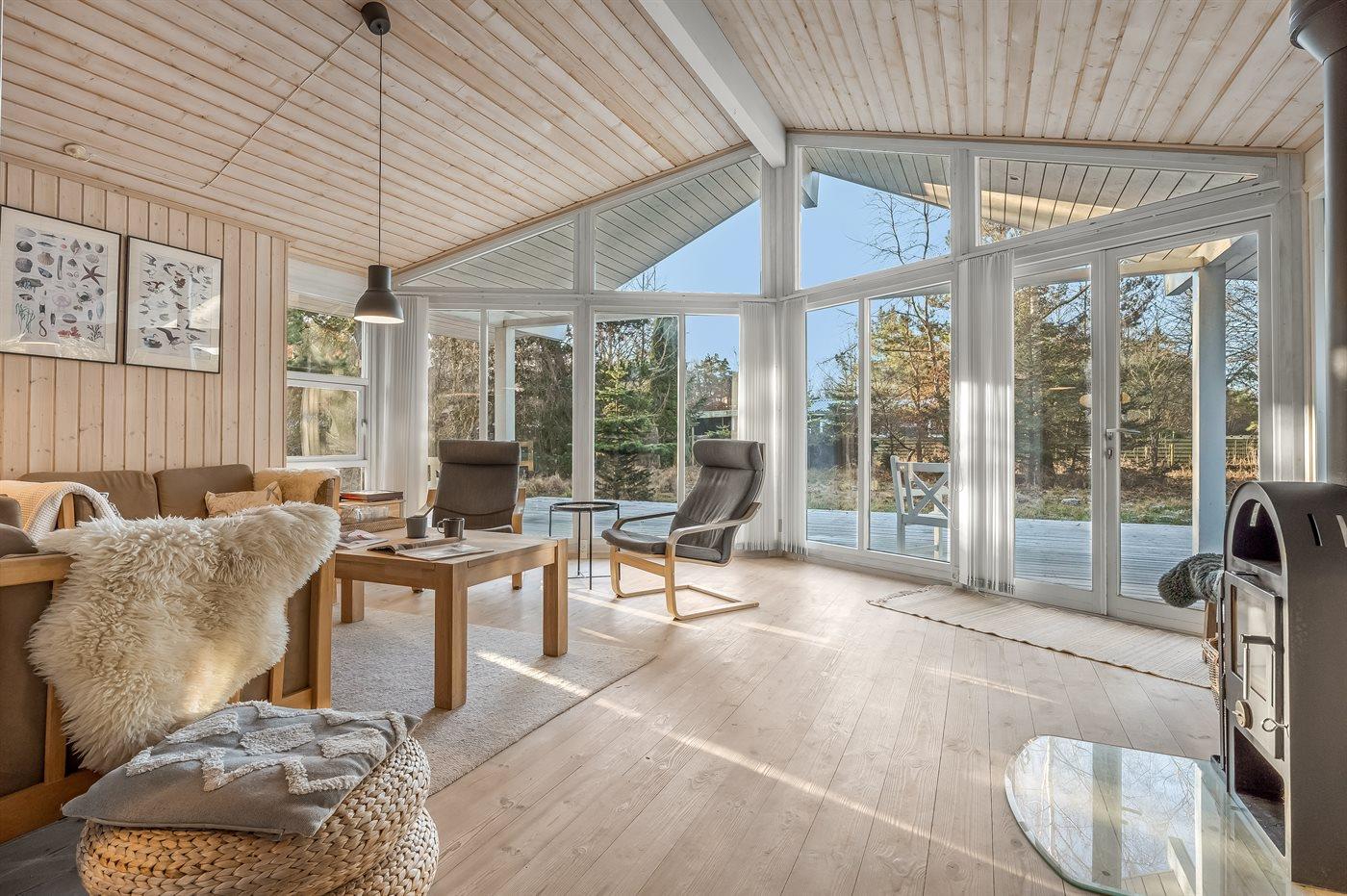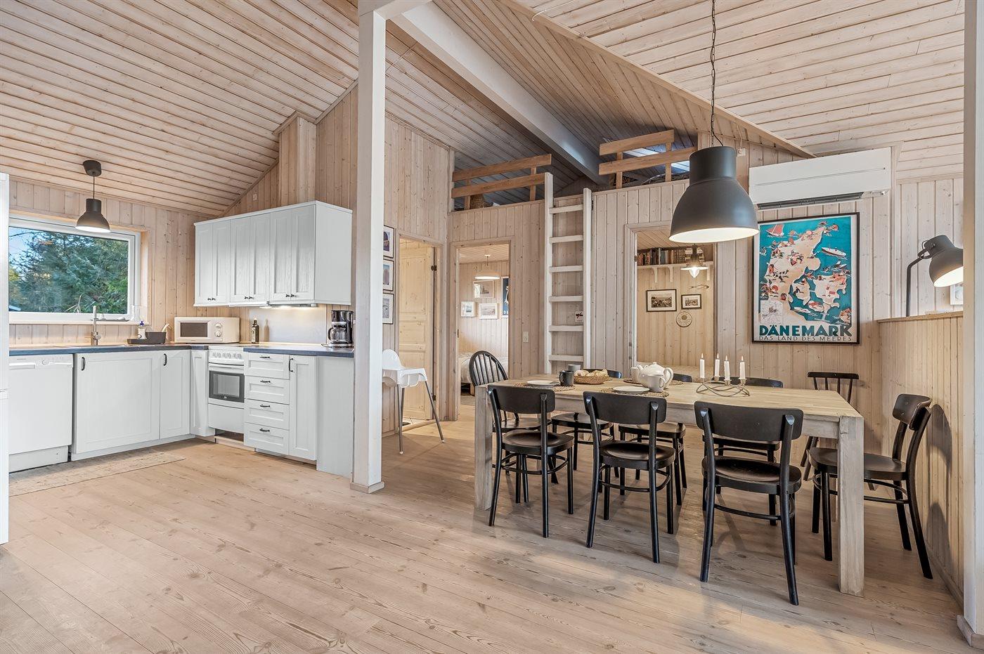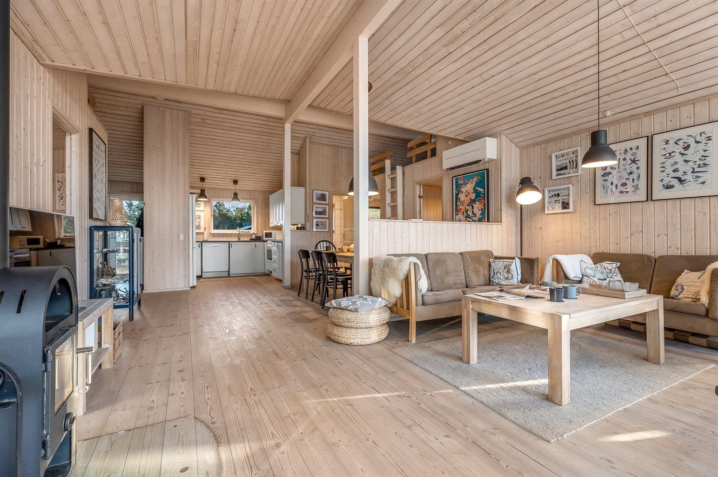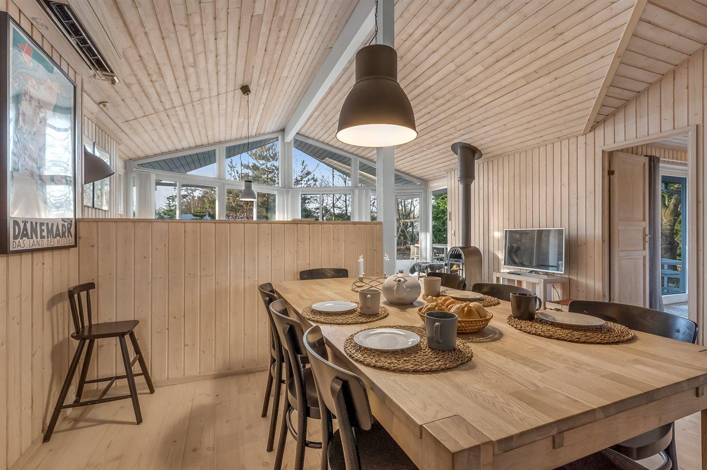 Sommerhuset egner sig til 8 personer. Ferieboligen er på 104 m² og er bygget i 2006. Det er tilladt at medbringe 2 husdyr. Ferieboligen er udstyret med energibesparende luft til luft varmepumpe. Der er gulvvarme i alle klinkegulve. Der er gulvvarme i entréen. Ferieboligen har vaskemaskine. Tørretumbler. Frysekapacitet på 114 liter. Der er desuden brændeovn. Til de små er der 1 stk. barnestol.