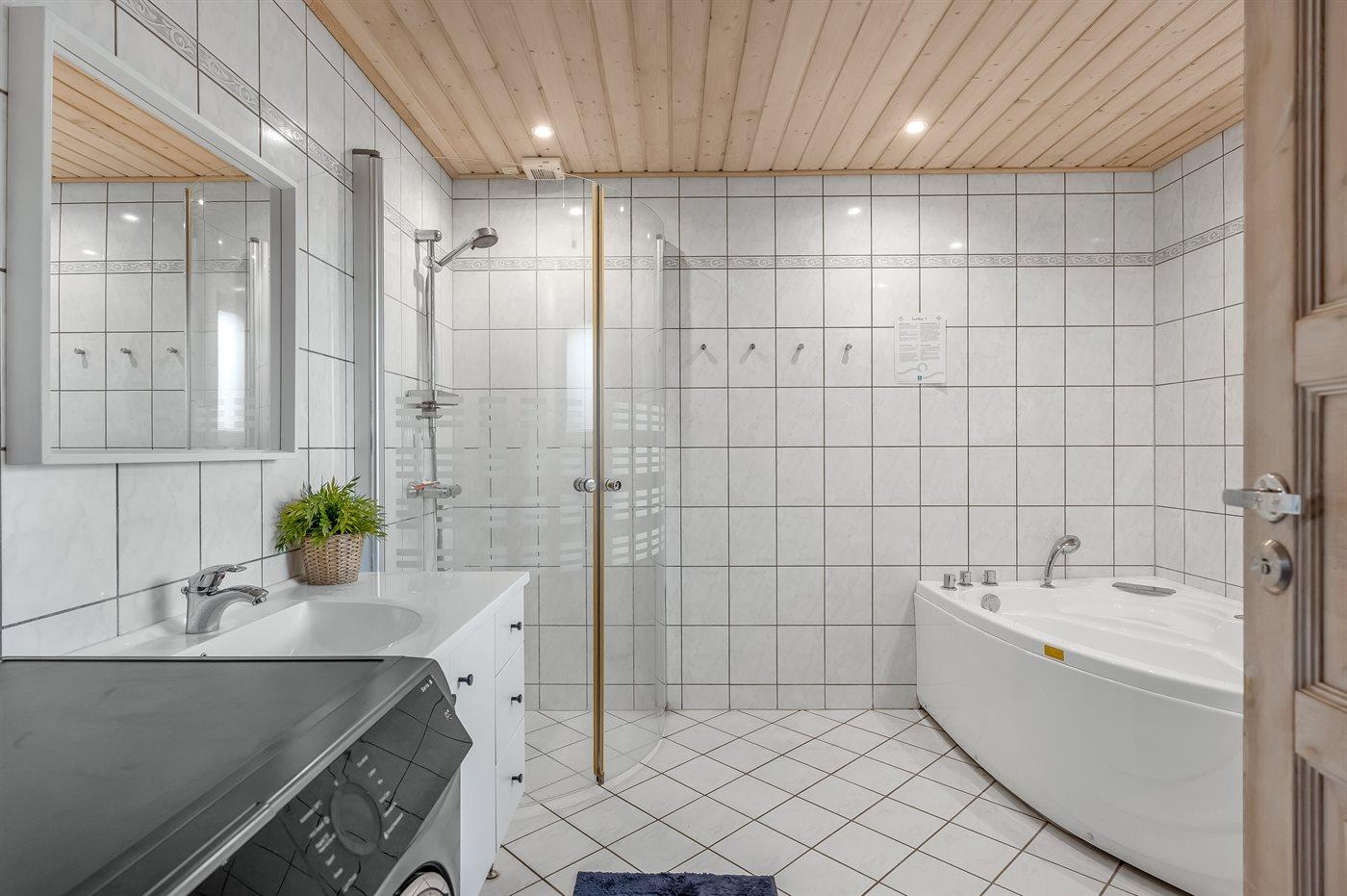 Der er 2 badeværelser med bruseniche og 2 toiletter. Der er gulvvarme på 2 badeværelser.