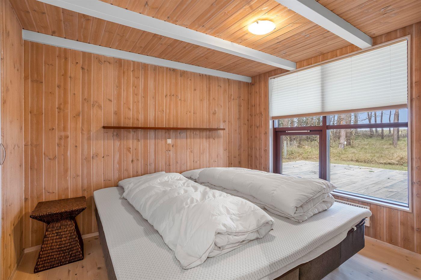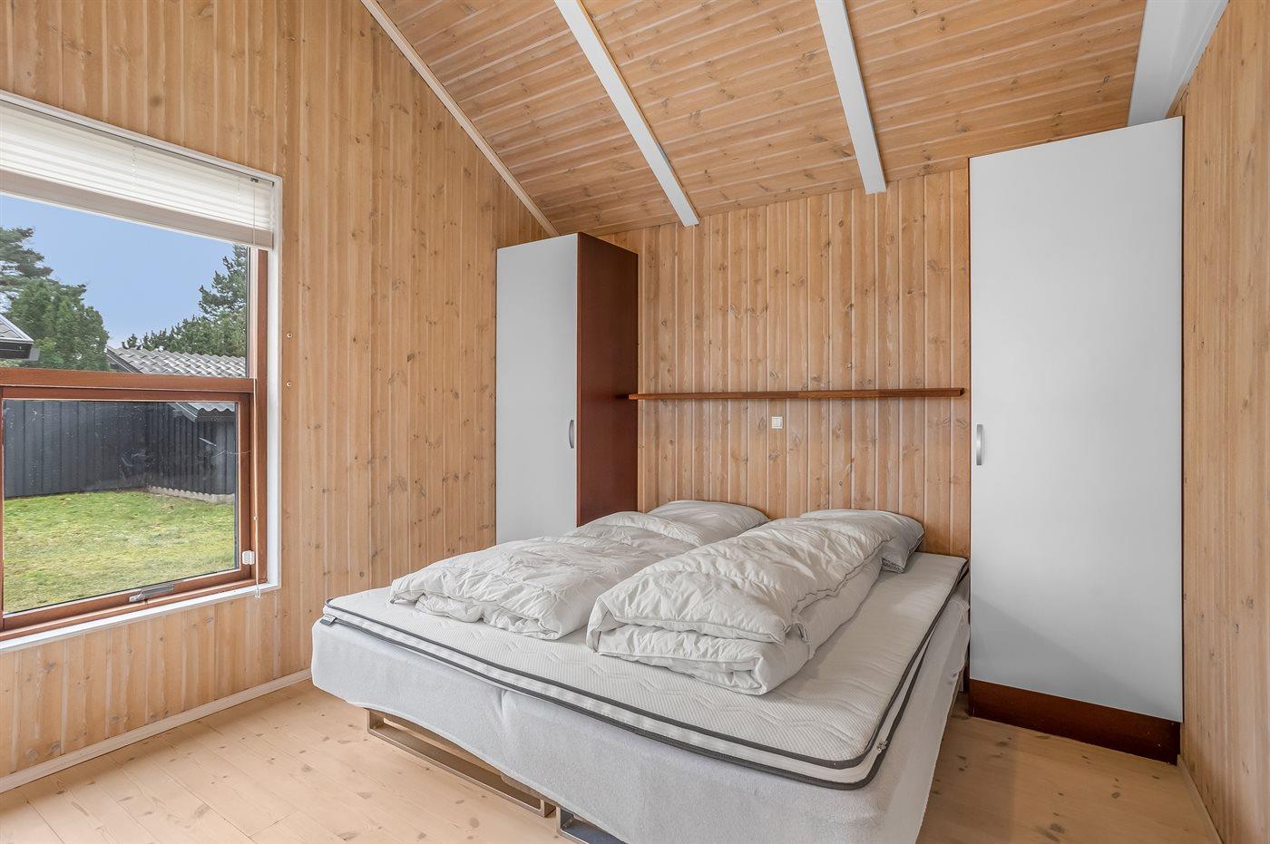 Der er i alt 3 soveværelser. Sovepladserne fordeler sig på: 6 sovepladser i dobbeltsenge. 2 sovepladser på madrasser. 2 af disse sovepladser befinder sig på husets hems. Derudover er der 1 stk. barneseng.