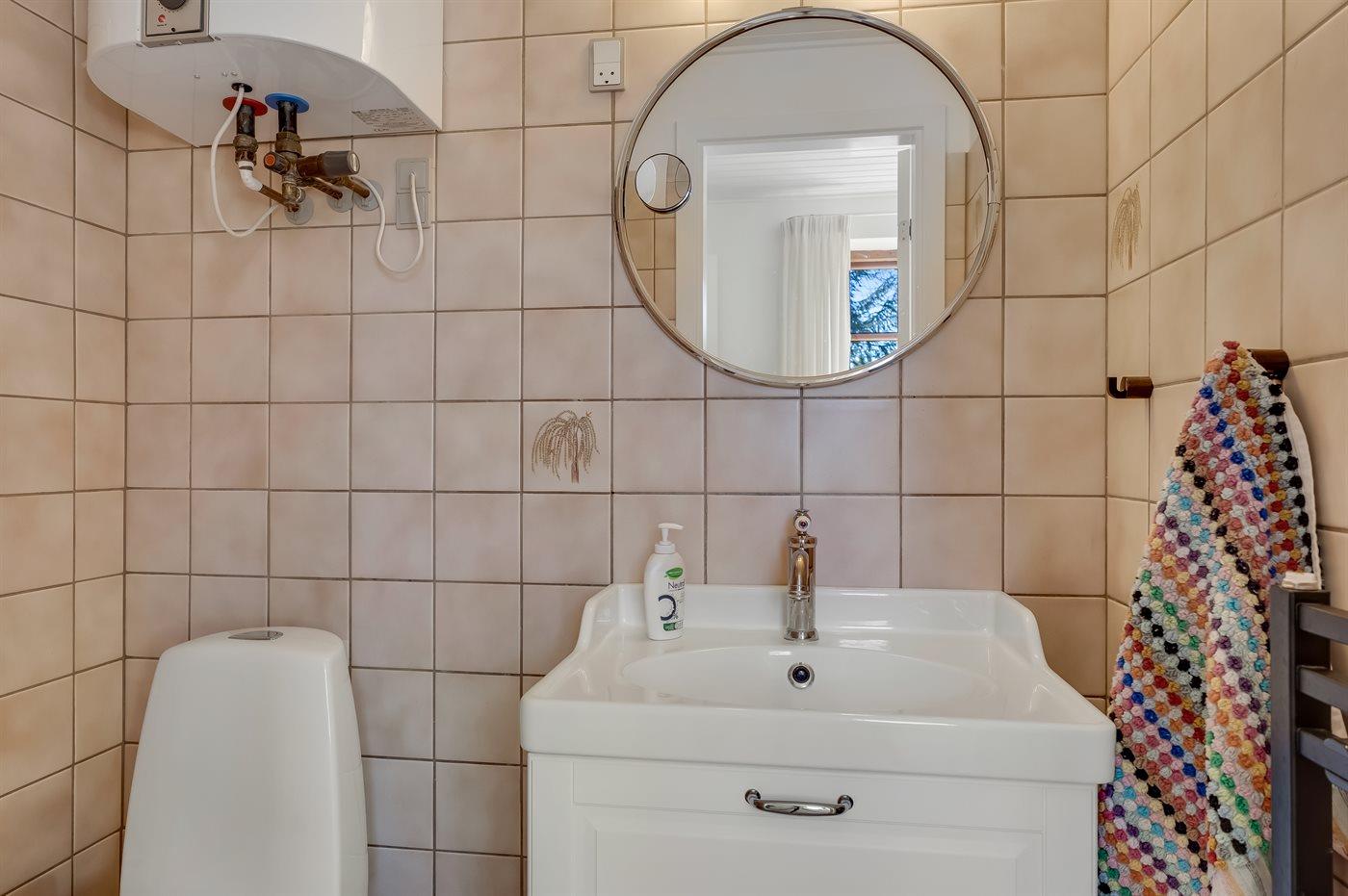 Der er 1 badeværelse med bruseniche og 2 toiletter, heraf 1 gæstetoilet. Der er gulvvarme på 1 badeværelse.