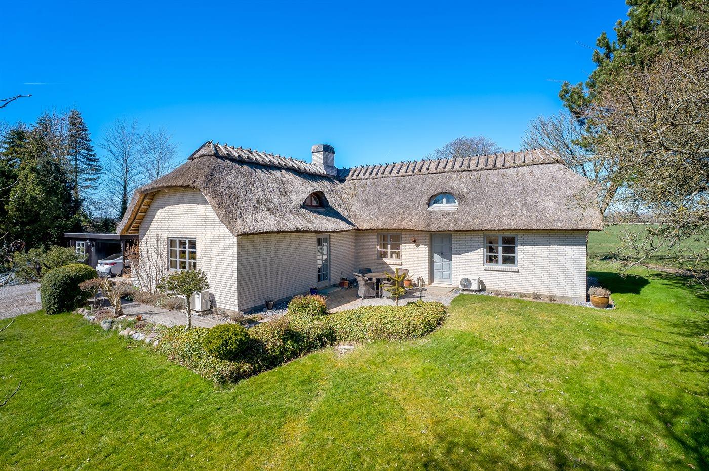 Hyggeligt stråtækt sommerhus i Gedesby med stor have og moderne faciliteter.