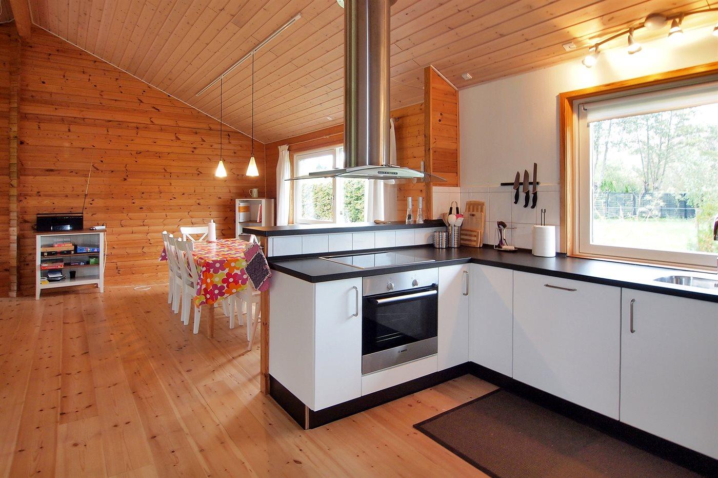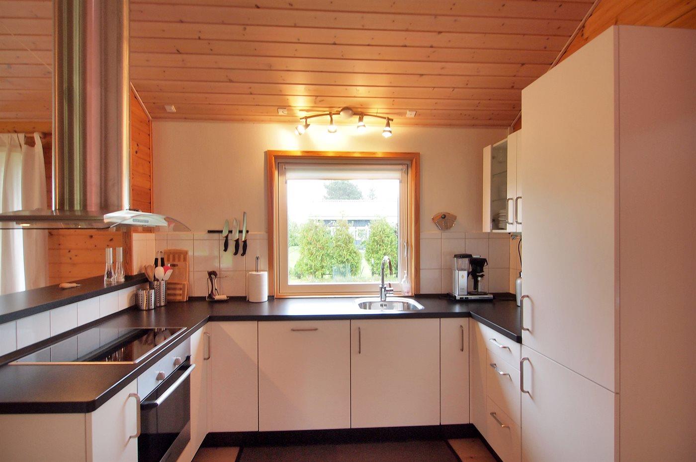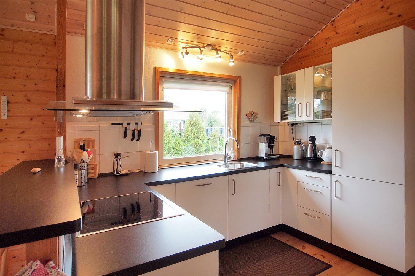 Køkkenet er udstyret med 1 køleskab. Der er 4 keramiske kogeplader, bageovn samt opvaskemaskine.