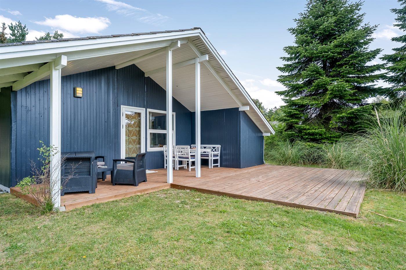 Ferieboligen er beliggende på en 971 m² stor havegrund. Der er 800 m til havet. Nærmeste forretning er beliggende i en afstand af 4400 m. Til ferieboligen hører åbent terrasseareal. Desuden er der overdækket terrasse. Parkering ved ferieboligen.