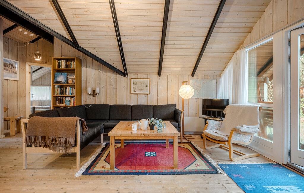 Hyggeligt træhus i Gedesby med sauna, nær sandstrand og smuk natur for afslappende ferieoplevelser.