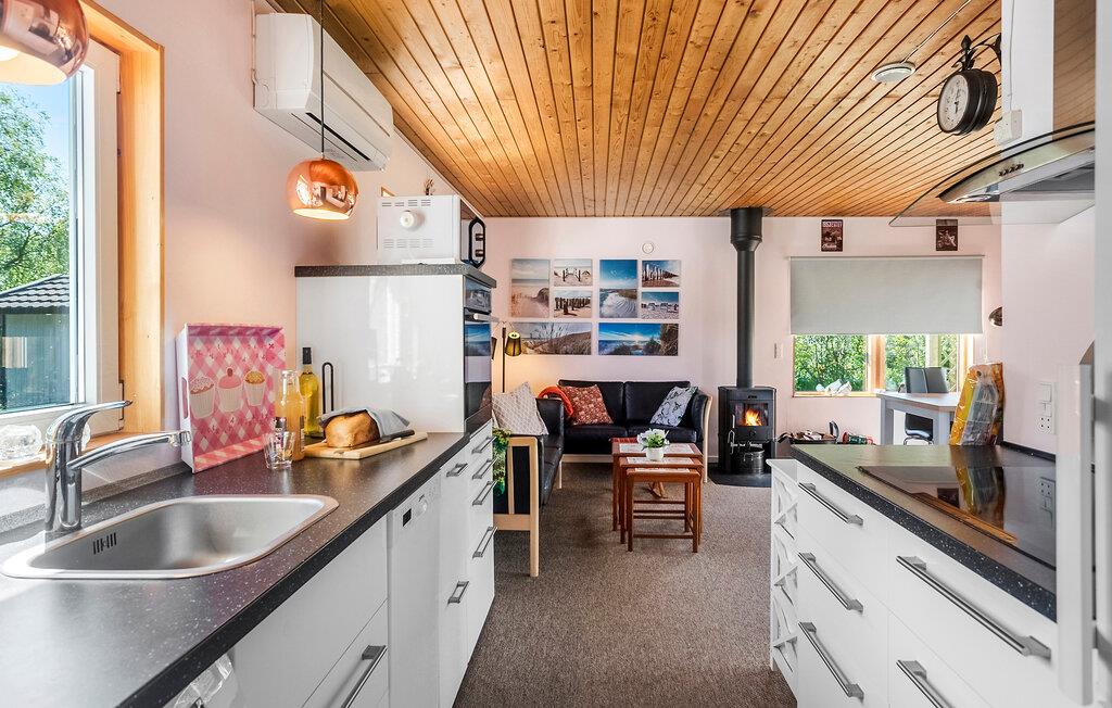 Sæt hverdagen på pause og og tilbring nogle vidunderlige dage i dette indbydende sommerhus, som ligger tæt på stranden. Huset er hyggeligt indrettet, så her kommer I garanteret til at føle jer hjemme. Om aftenen kan I slappe af til lyden af de knitrende flammer i brændeovnen, mens I planlægger næste dags aktiviteter.