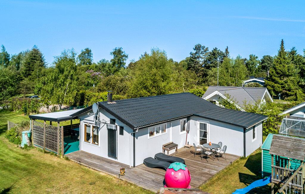 Hyggeligt sommerhus i Gedesby nær stranden med brændeovn og delvist overdækket terrasse til afslapning.
