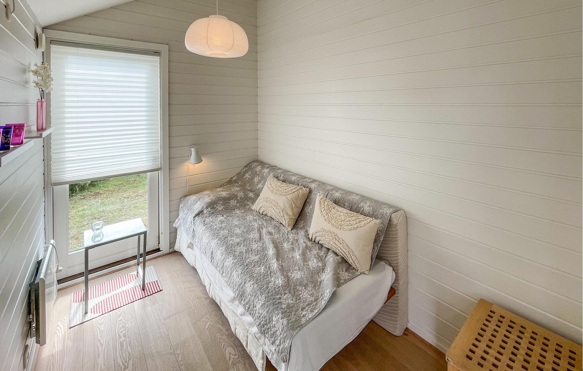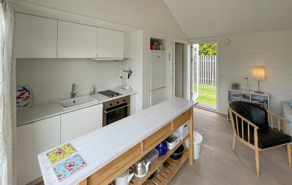 Dette hus har en kombination af rent design, lyse træpaneler og muntre farvestrejf. Her finder I et sted, hvor I kan slappe af og tilbringe afslappende dage – uanset om I lytter til musik, streamer en podcast eller tryller lækre måltider frem i det moderne udstyrede køkken.