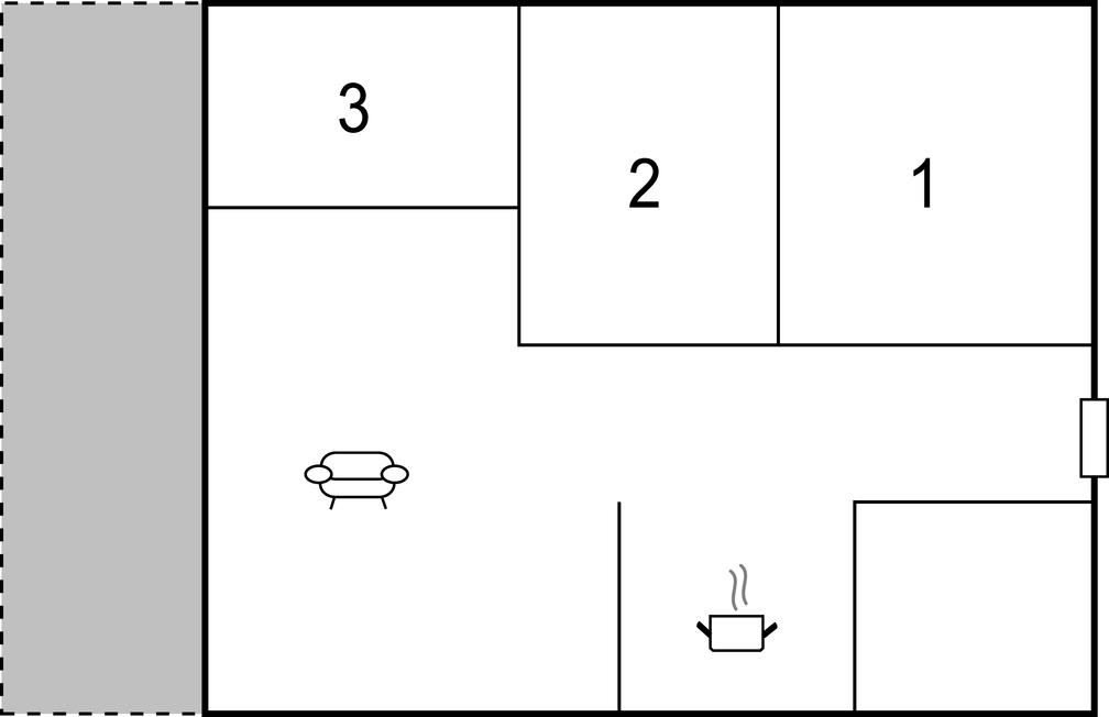 Der er også to soveværelser og et badeværelse. Alkoven i stuen giver jer yderligere to sengepladser.
