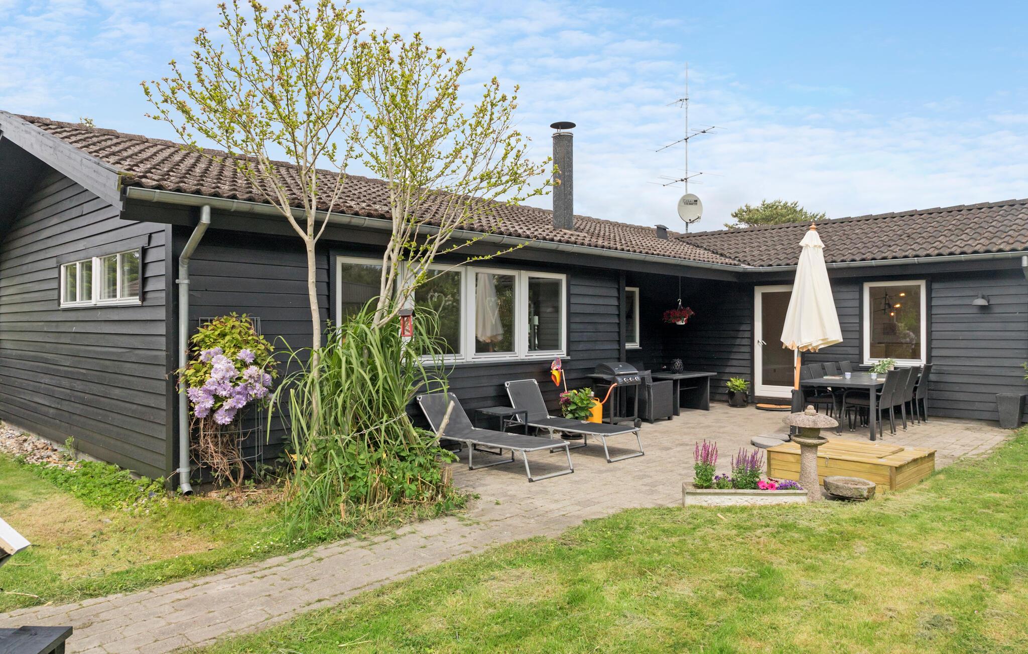 Træd ud på terrasse, hvor I har et skønt udsigt over haven. Her kan I grille på varme sommeraftener, og lade børnene lege i haven.
