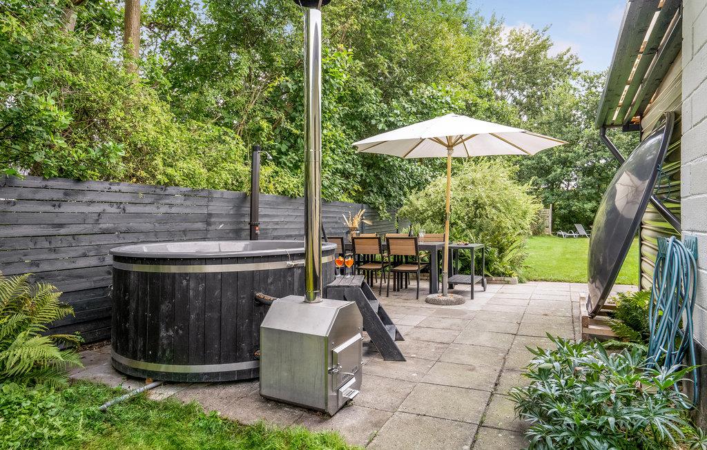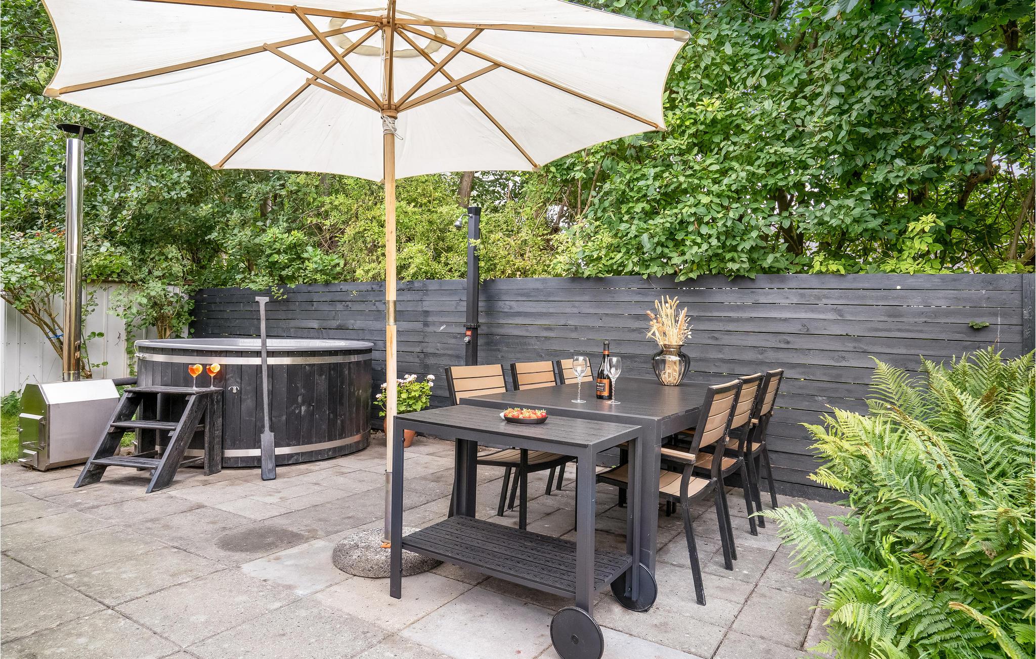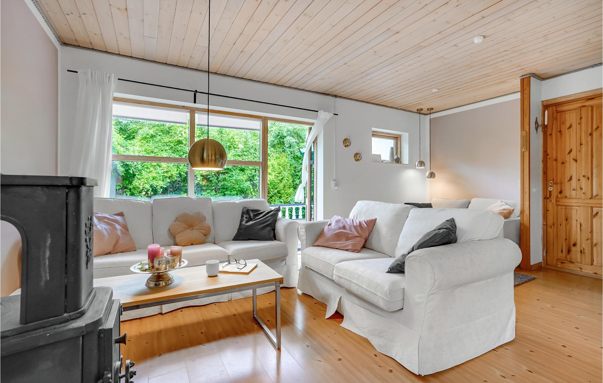 Smagfuldt indrettet stue og åbent køkken. Feriehuset har en stor udestue med terassevarmer. Derudover har det flere terrasser, hvor I altid kan finde en plads med solskin eller skygge og nyde alle jeres måltider. Der er også et lækkert vildmarksbad og en solbruser udenfor. Her er virkelig tale om ro, hygge og afslapning. Huset har Wi-Fi.