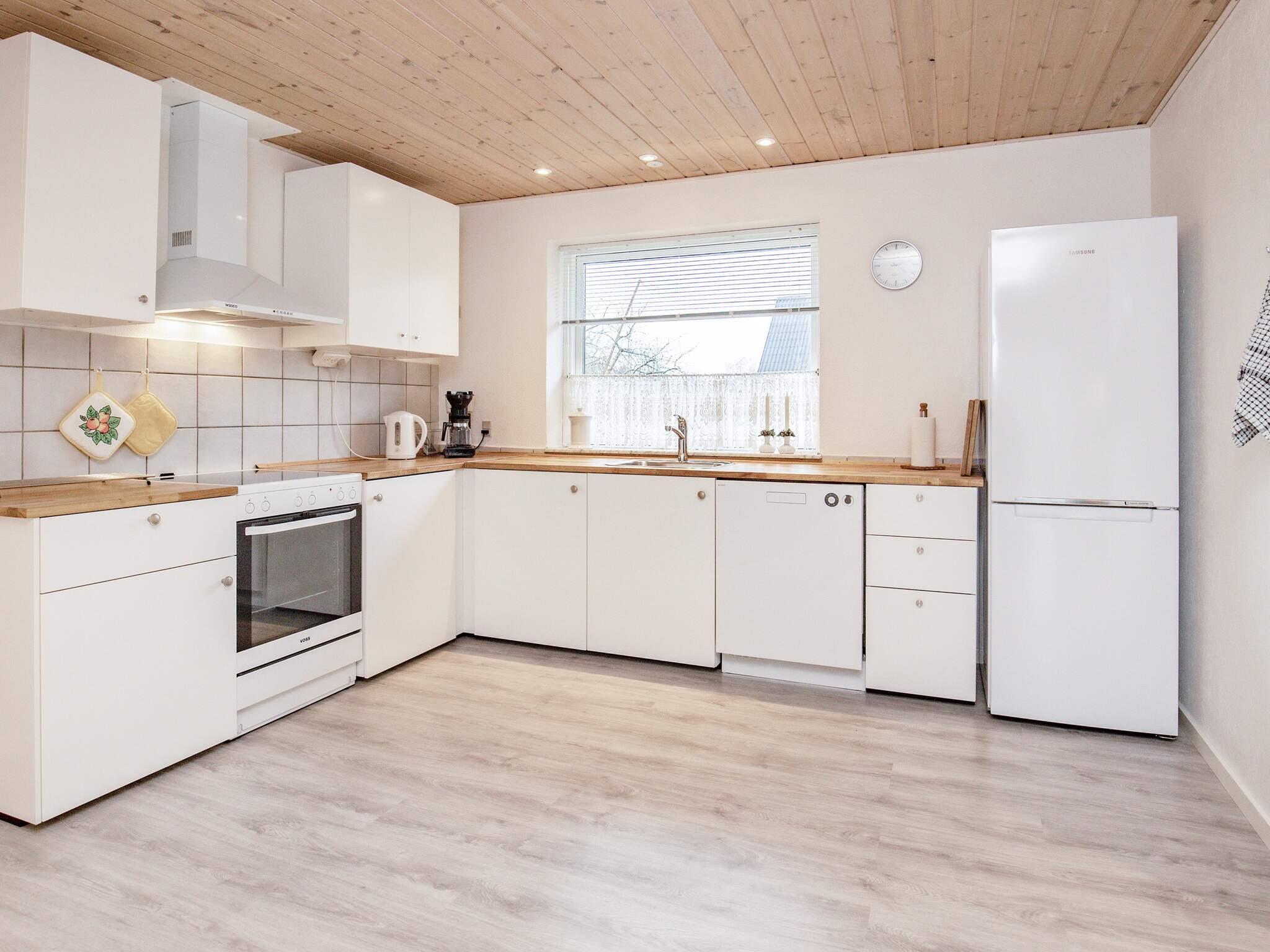 Indenfor giver køkkenet og opholdsstuen i åbent plan et indbydende rum for familielivet med direkte adgang til en stor overdækket terrasse, der fører ud til en 1.000 m² stor have, perfekt til at slappe af, solbade eller nyde en grill. Til huset hører et praktisk bryggers med vaskemaskine og tørretumbler.