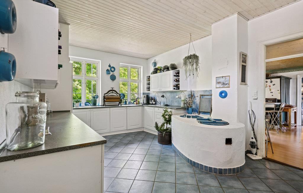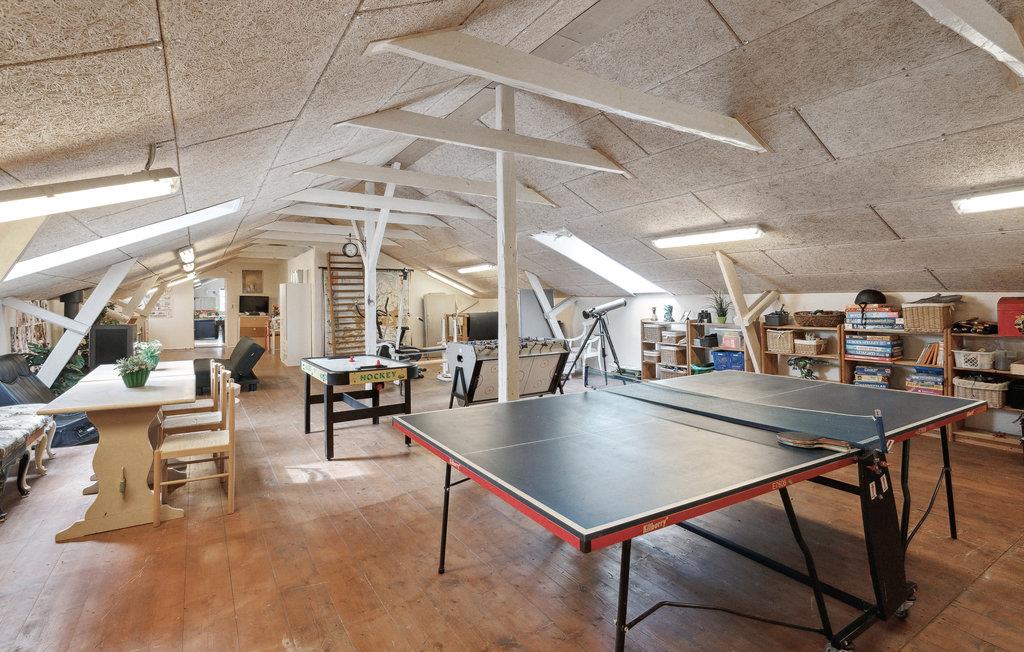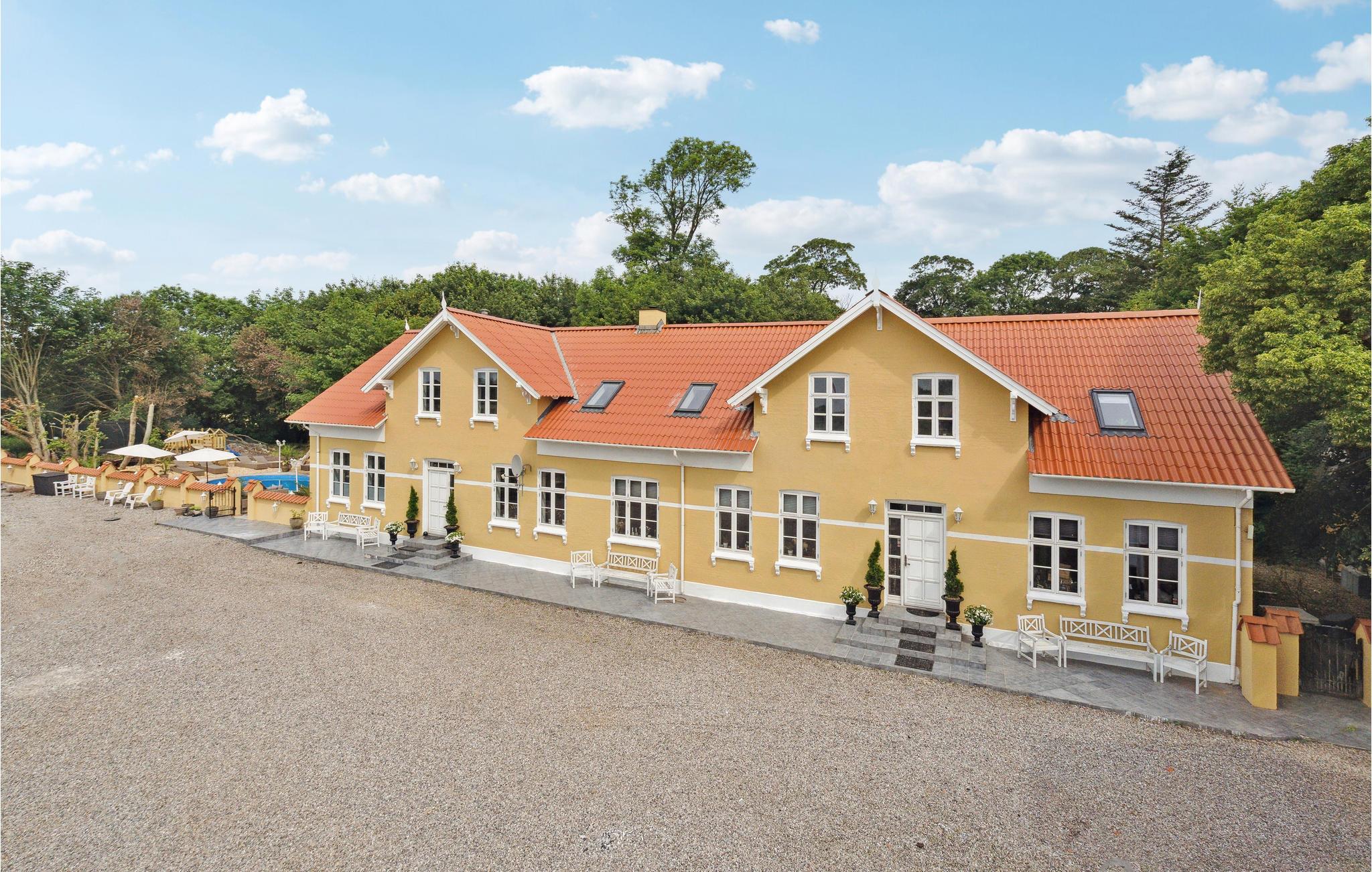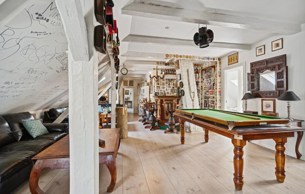 På denne tidligere indbydende gård får I en oplevelse ud over det sædvanlige, og der venter en ferie med spas og ren velvære! I huset kan man mærke historiens vingesus, og det er tydeligvis indrettet med kærlighed. Interiøret, de mange nips og vægdekorationerne giver stedet sin charmerende og enestående atmosfære. Rummenes forskellige stilarter og et væld af detaljer er en oplevelse i sig selv og harmonerer perfekt sammen, for her er sammensætningen indbegrebet af hygge. I hvert værelse er det som at træde ind i en anden tidsæra. Dermed finder I den hyggeligste ramme om en herlig familietid med afkobling og nærvær, og der er plads til den helt store familiesammenkomst. Nyd en skøn tid med fælles madlavning, brætspilshygge, bordfodboldkampe, selvforkælelse og en storstilet fest ved det kilometerlange bord i den fine spisestue. På kølige dage kan I boltre jer i aktivitetsrummet i annekset. Den store naturgrund opfylder alle ønsker. Hvad med en omgang volleyball? Børnene kan også få krøllede fingre i swimmingpoolen, mens andre mærker boblerne i det udendørs spabad med et glas rosé eller fremtryller lækre retter i køkkenet. Nyd dejlige måltider på terrassen med vidunderlig sommerstemning.