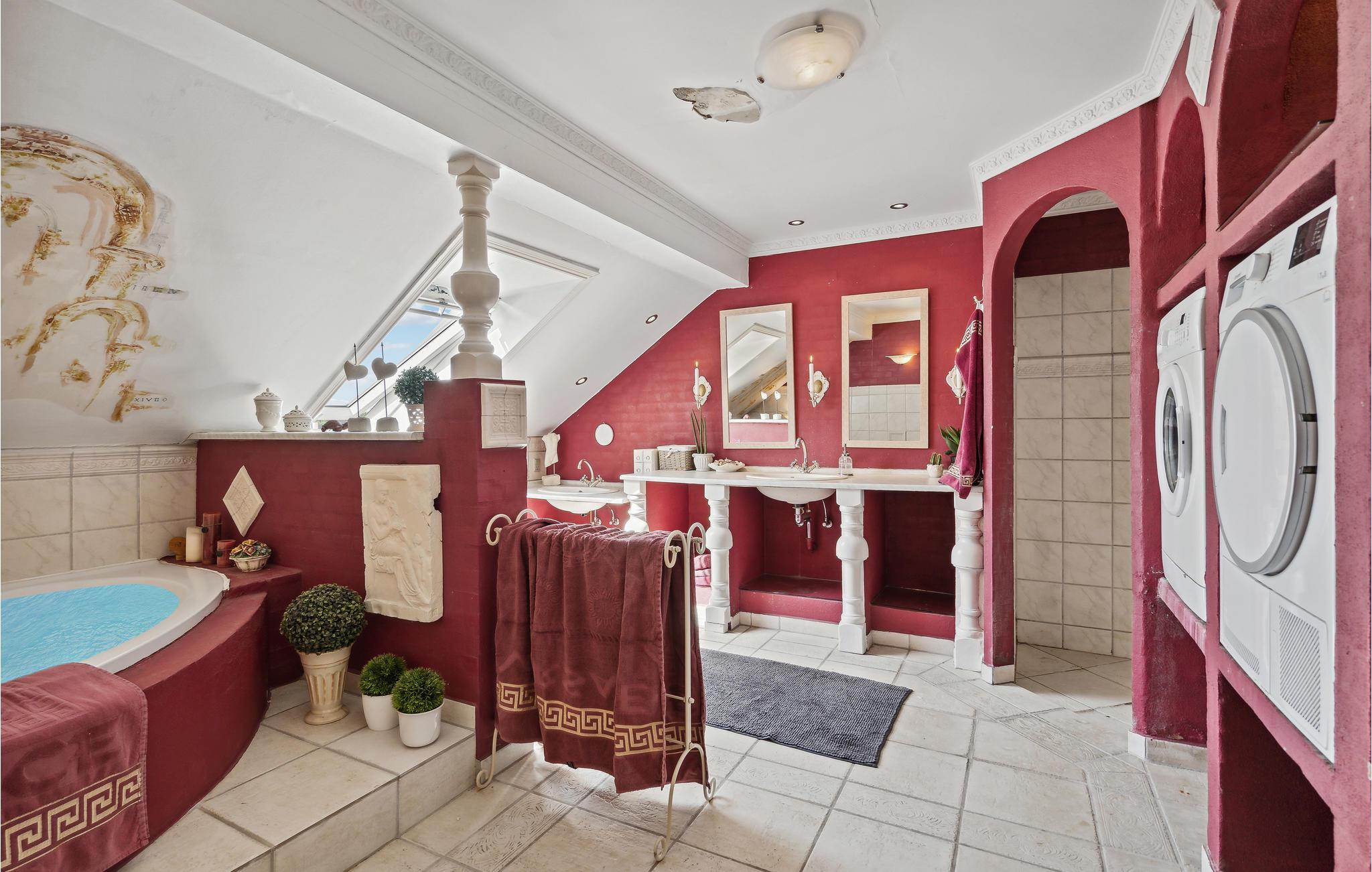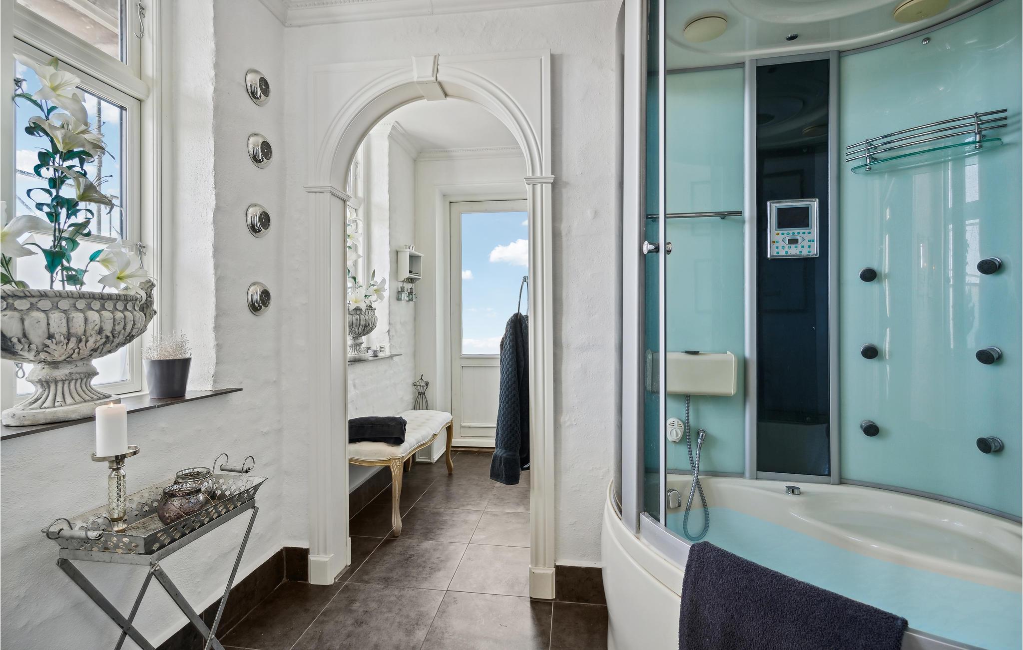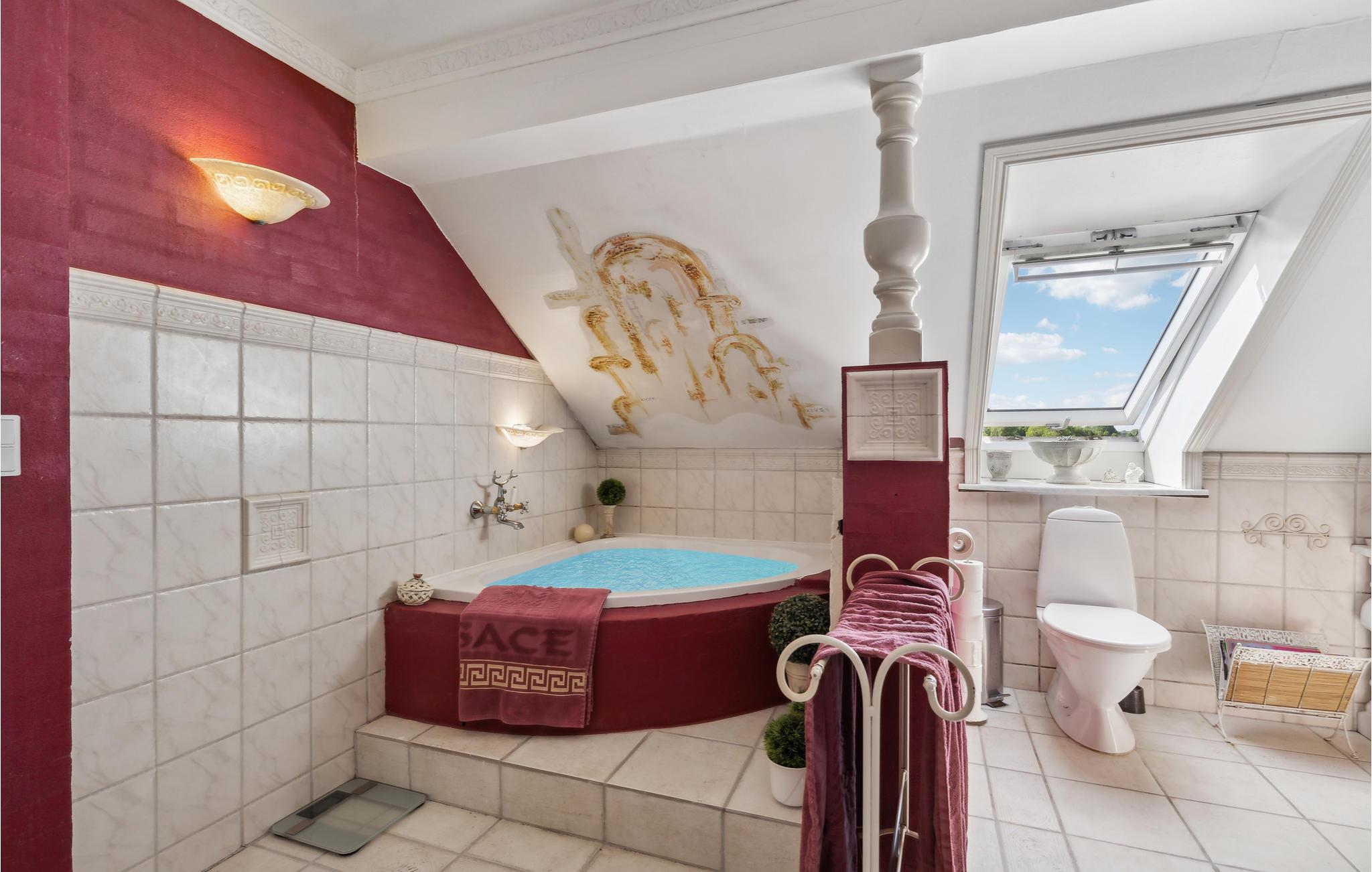 På denne tidligere indbydende gård får I en oplevelse ud over det sædvanlige, og der venter en ferie med spas og ren velvære! I huset kan man mærke historiens vingesus, og det er tydeligvis indrettet med kærlighed. Interiøret, de mange nips og vægdekorationerne giver stedet sin charmerende og enestående atmosfære. Rummenes forskellige stilarter og et væld af detaljer er en oplevelse i sig selv og harmonerer perfekt sammen, for her er sammensætningen indbegrebet af hygge. I hvert værelse er det som at træde ind i en anden tidsæra. Dermed finder I den hyggeligste ramme om en herlig familietid med afkobling og nærvær, og der er plads til den helt store familiesammenkomst. Nyd en skøn tid med fælles madlavning, brætspilshygge, bordfodboldkampe, selvforkælelse og en storstilet fest ved det kilometerlange bord i den fine spisestue. På kølige dage kan I boltre jer i aktivitetsrummet i annekset. Den store naturgrund opfylder alle ønsker. Hvad med en omgang volleyball? Børnene kan også få krøllede fingre i swimmingpoolen, mens andre mærker boblerne i det udendørs spabad med et glas rosé eller fremtryller lækre retter i køkkenet. Nyd dejlige måltider på terrassen med vidunderlig sommerstemning.