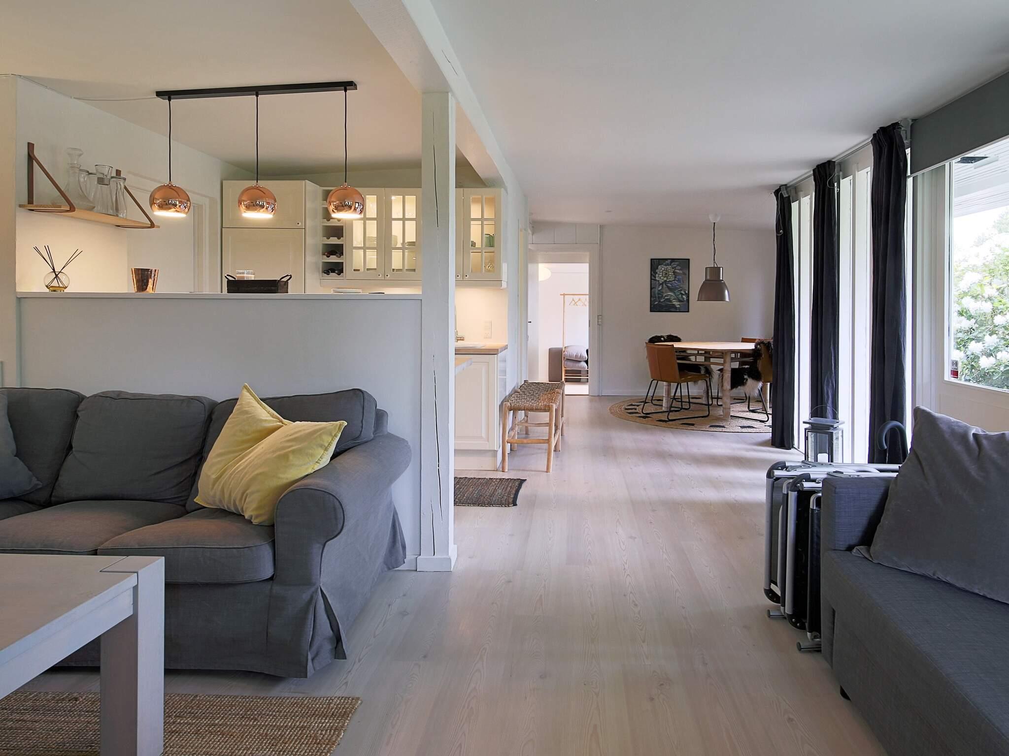Dette charmerende feriehus ligger i nærheden af Gilleleje, tæt på vandet og naturskønne vandrestier. Huset har et lyst og funktionelt køkken med keramiske kogeplader, køleskab/fryser, mikroovn, kaffemaskine og opvaskemaskine. Herfra har du direkte adgang til en rummelig flisebelagt terrasse, hvor du kan nyde aftensolen. Køkkenet er åbent mod en spiseplads og et hyggeligt opholdsområde, hvilket skaber en indbydende atmosfære til fælles måltider og afslapning.
