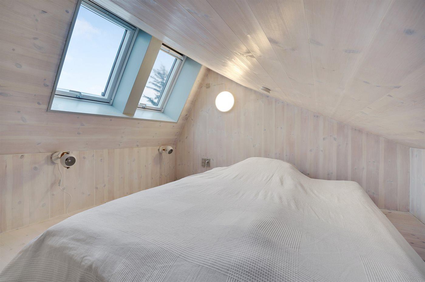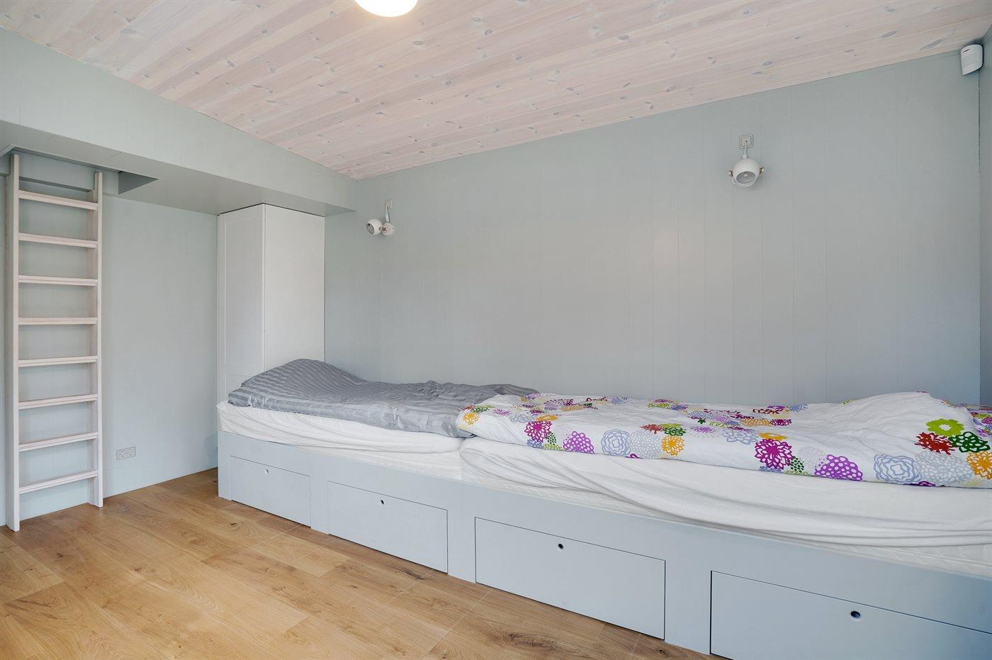 Der er i alt 5 soveværelser. Sovepladserne fordeler sig på: 10 sovepladser i dobbeltsenge. 6 sovepladser på madrasser. 6 af disse sovepladser fordeler sig på 3 hemse.