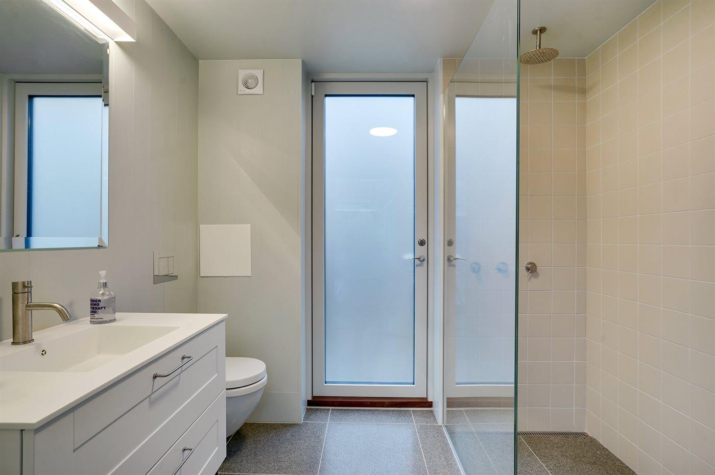 Der er 2 badeværelser med bruseniche og 2 toiletter.