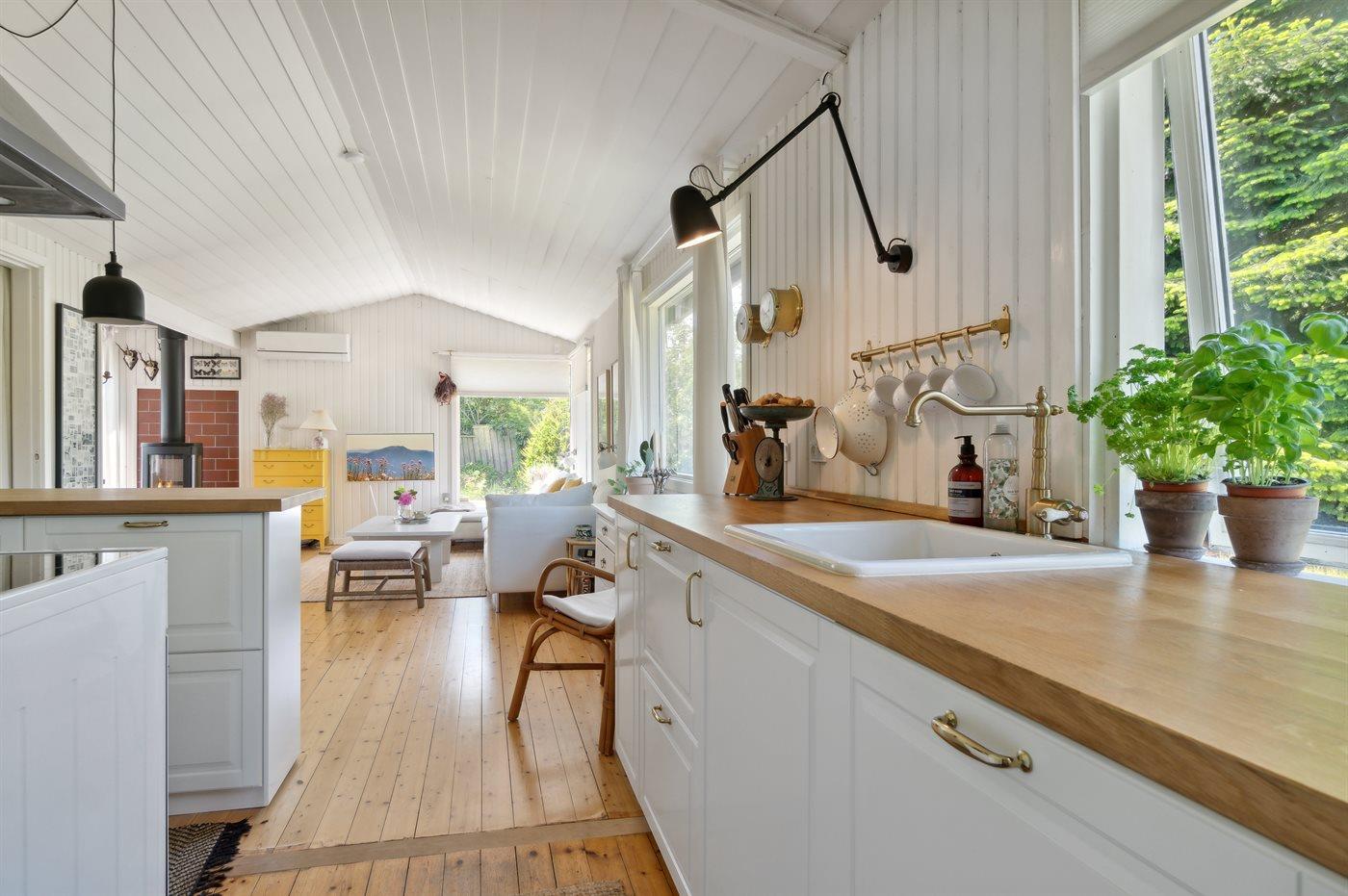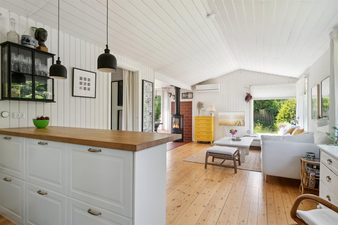 Dette rummelige sommerhus byder på et stort køkken i åben forbindelse med en hyggelig og lys stue og spiseplads. Her er rig mulighed for hygge og samvær. Fra spisestuen er der direkte udgang til haven og den store træterrasse, hvor en del er overdækket. Den store have er indhegnet med et 65 cm højt hegn og indbyder til leg og boldspil. Huset indeholder 3 soveværelser og 1 badeværelse med bruseniche. Der er desuden vaskemaskine og tørretumbler. Der er etableret fibernet.