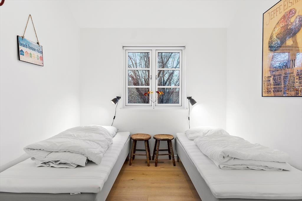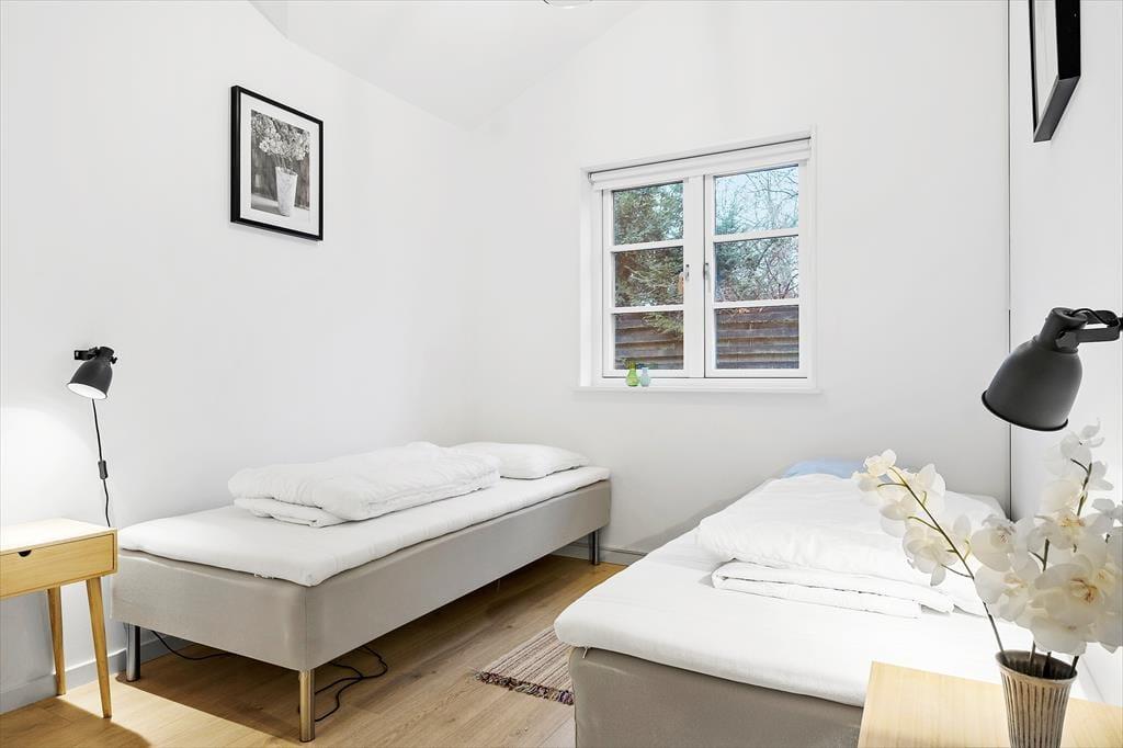 Sommerhuset har flere gode soveværelser, hvor du kan vågne op til lyden af havet i det fjerne. Med to badeværelser er der god plads til hele familien, så ferien bliver komfortabel fra start til slut.
