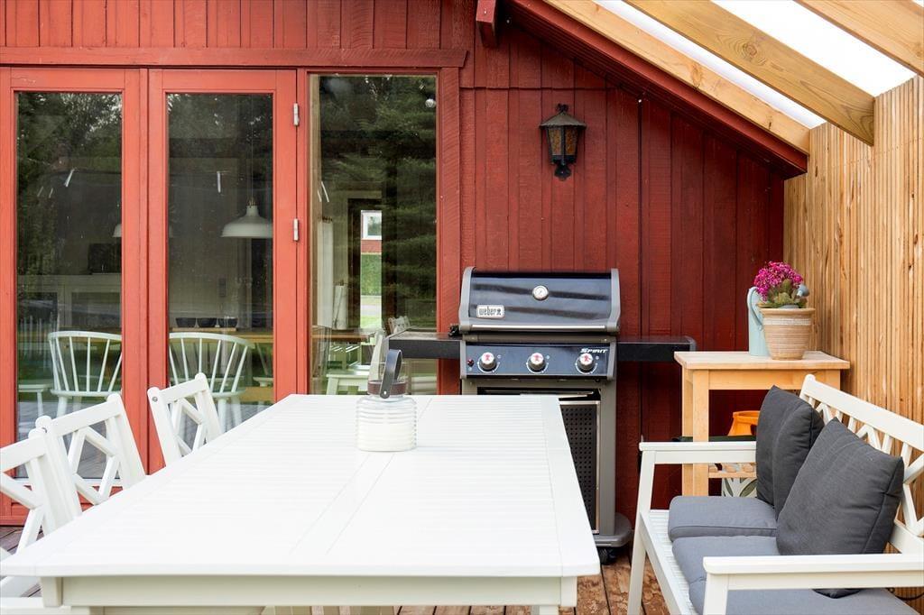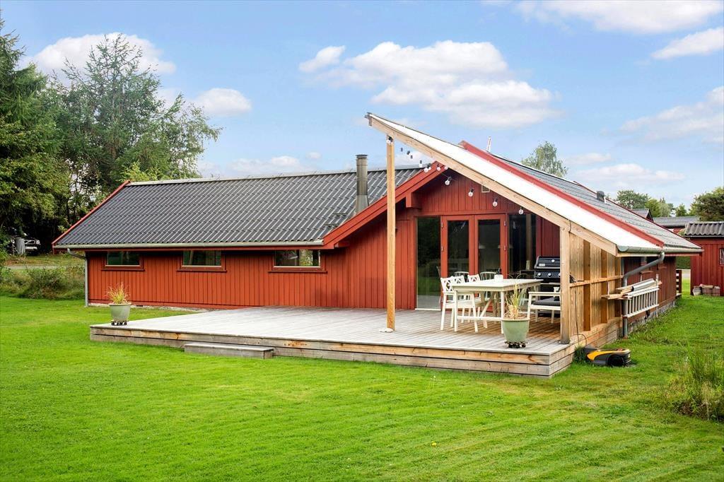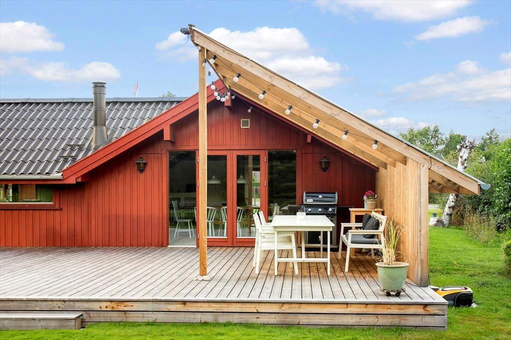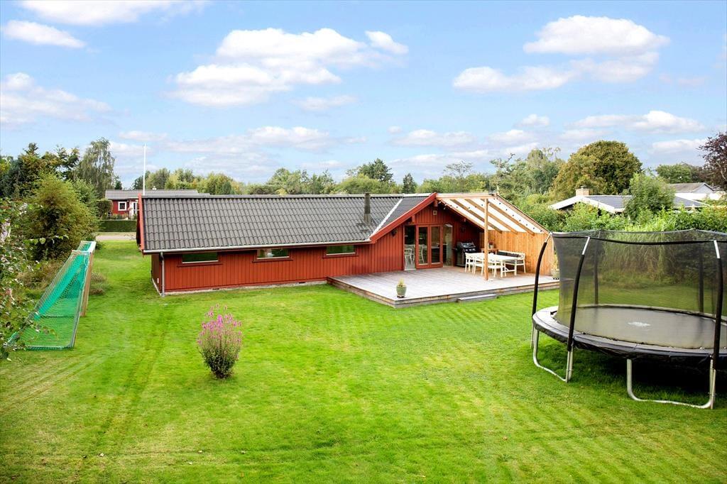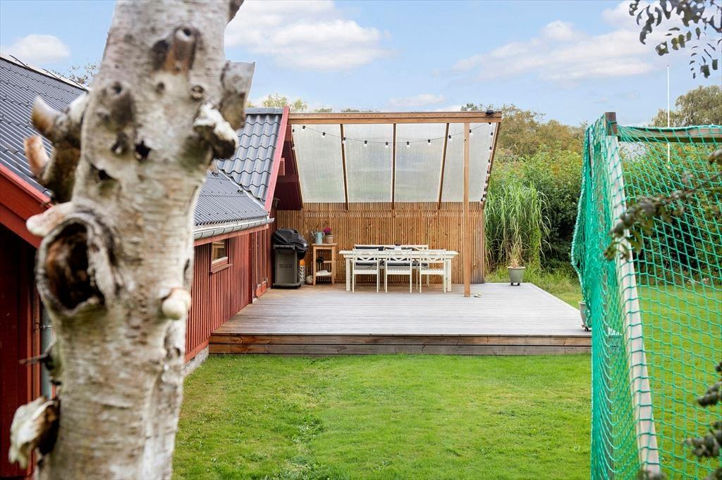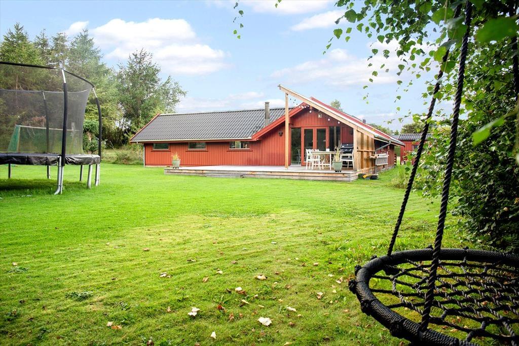 Haven omkring sommerhuset er en sand perle, der indbyder til både leg og afslapning. For børnene er trampolinen det oplagte samlingspunkt, hvor der kan hoppes og grines dagen lang. For de voksne tilbyder terrassen et skønt sted at nyde solen, slappe af med en kop kaffe eller samle familien til en grillaften under åben himmel. Haven er smukt anlagt med masser af plads til boldspil, leg og afslapning, og her finder du den perfekte balance mellem privatliv og naturskønne omgivelser.