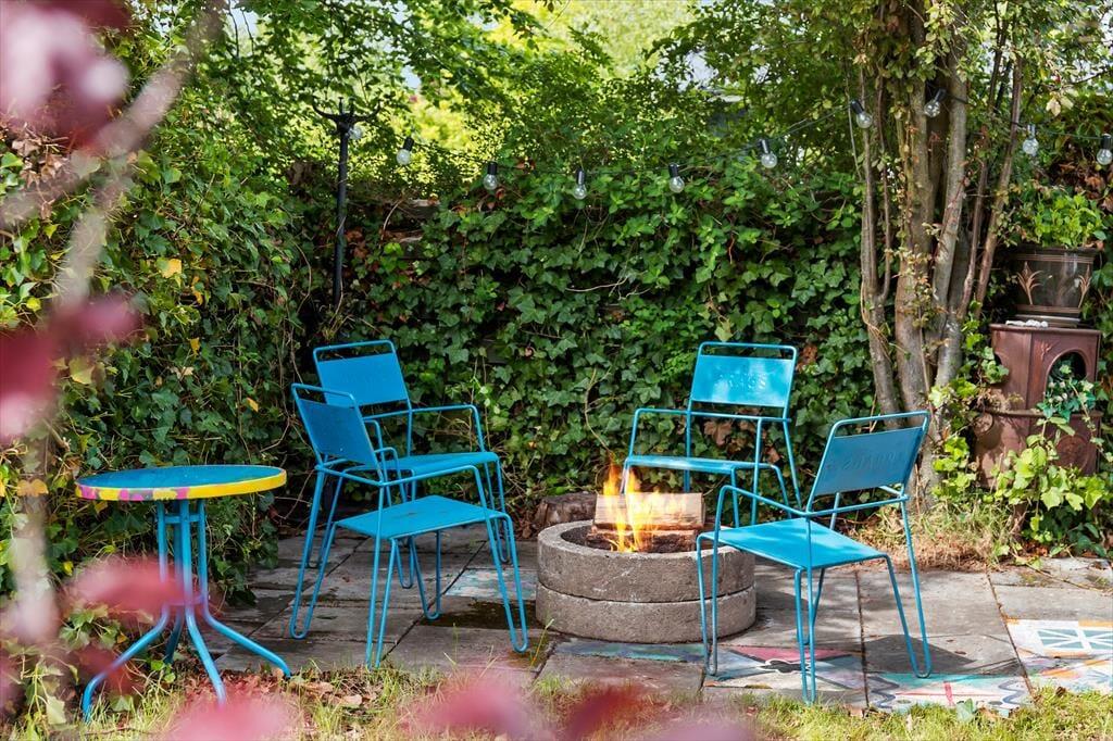 Grunden omkring huset er et lille eventyr i sig selv. Haven er frodig og indrammet af buskads, som skaber en hyggelig oase, hvor man kan sidde ugeneret på terrassen og nyde en stille morgenkaffe eller en lang sommeraften med grill og latter. For børnene er haven et sandt paradis. Det store legehus i to etager indbyder til fantasifulde lege, og her kan selv de voksne være med. Der er både gynger, trampolin, sandkasse og endda en bålplads, hvor I sammen kan bage snobrød og riste skumfiduser, mens mørket falder på. Her kan hver dag føles som en ny opdagelse, hvor græs under tæerne og jord på fingrene bliver en naturlig del af ferien.