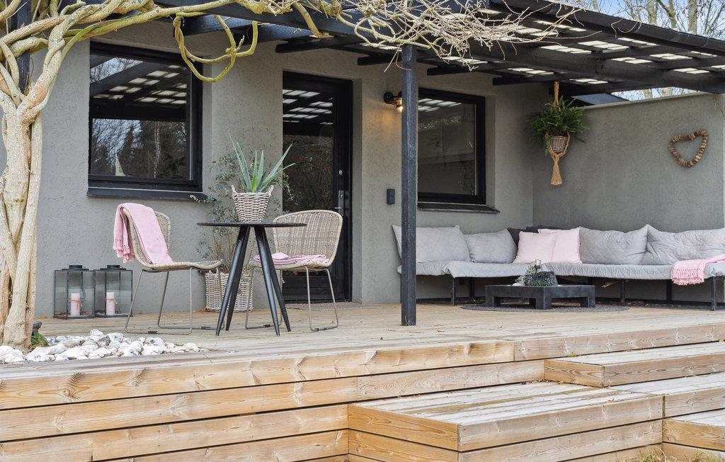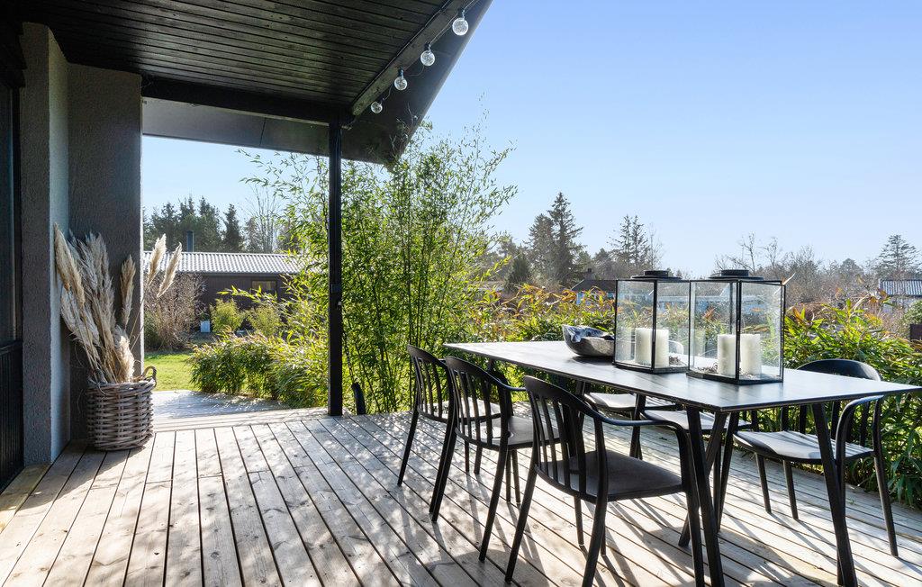 Rundt om huset venter en god, stor grund, hvor børnene kan løbe og lege, og hele familien kan samles til udendørsspil. Slut de lune sommerdage af med grillretter på terrassen og et glas vin i en af de hyggelige solkroge.